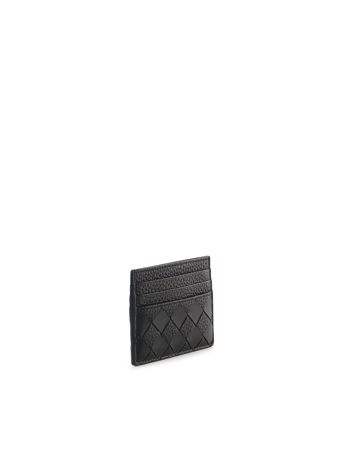 イントレチャート細工を施したカーフスキン製、カードスロット6つ、センターポケット1つ、寸法:10.5 x 8 x 0.5 cm、イタリア製、色:黒