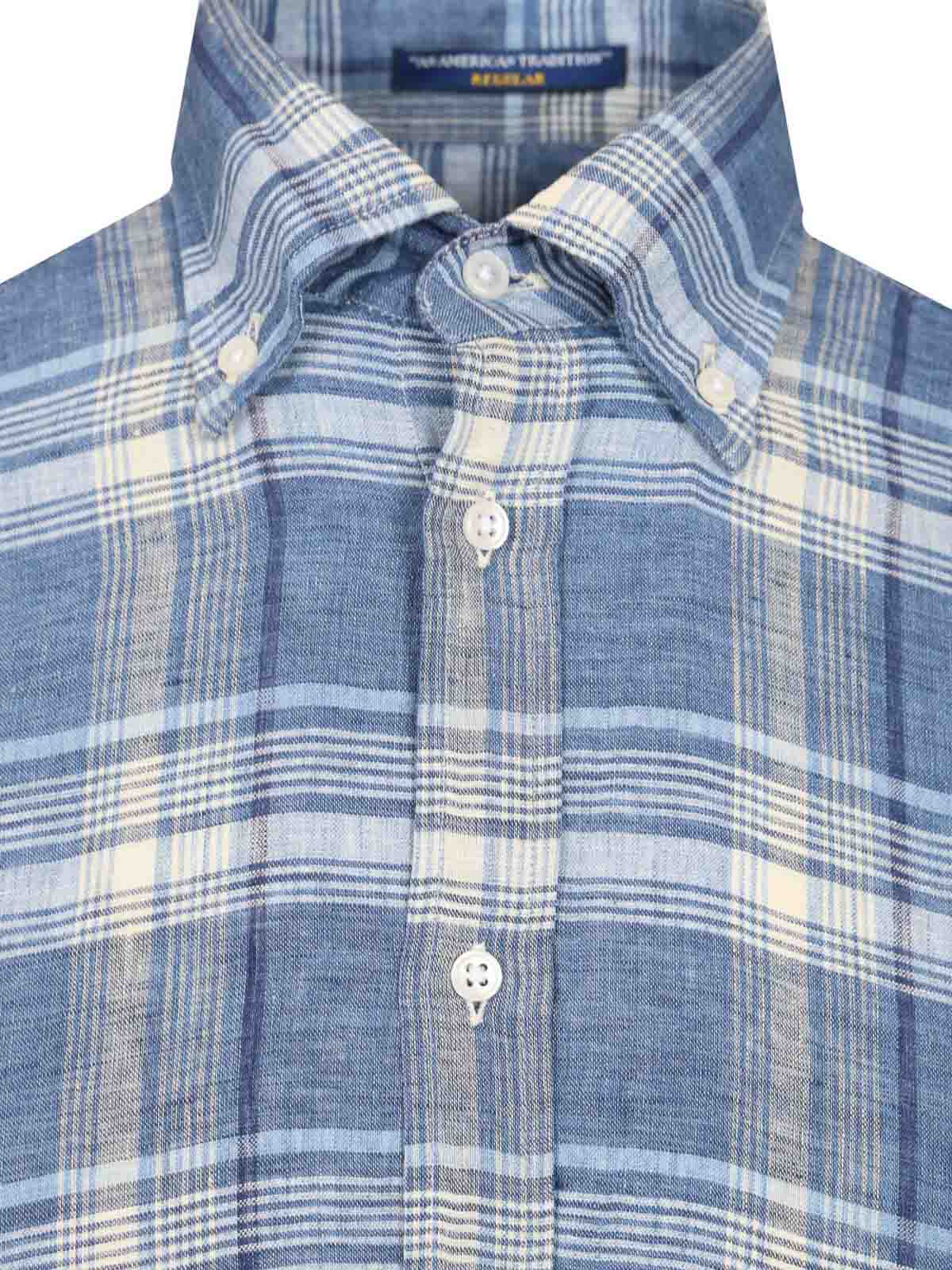 B d Baggies ブラッドフォードリネンシャツ、しっかりとしたボタンダウン襟、フロントボタン留め、裾に小さなラベルが縫い付けられています
