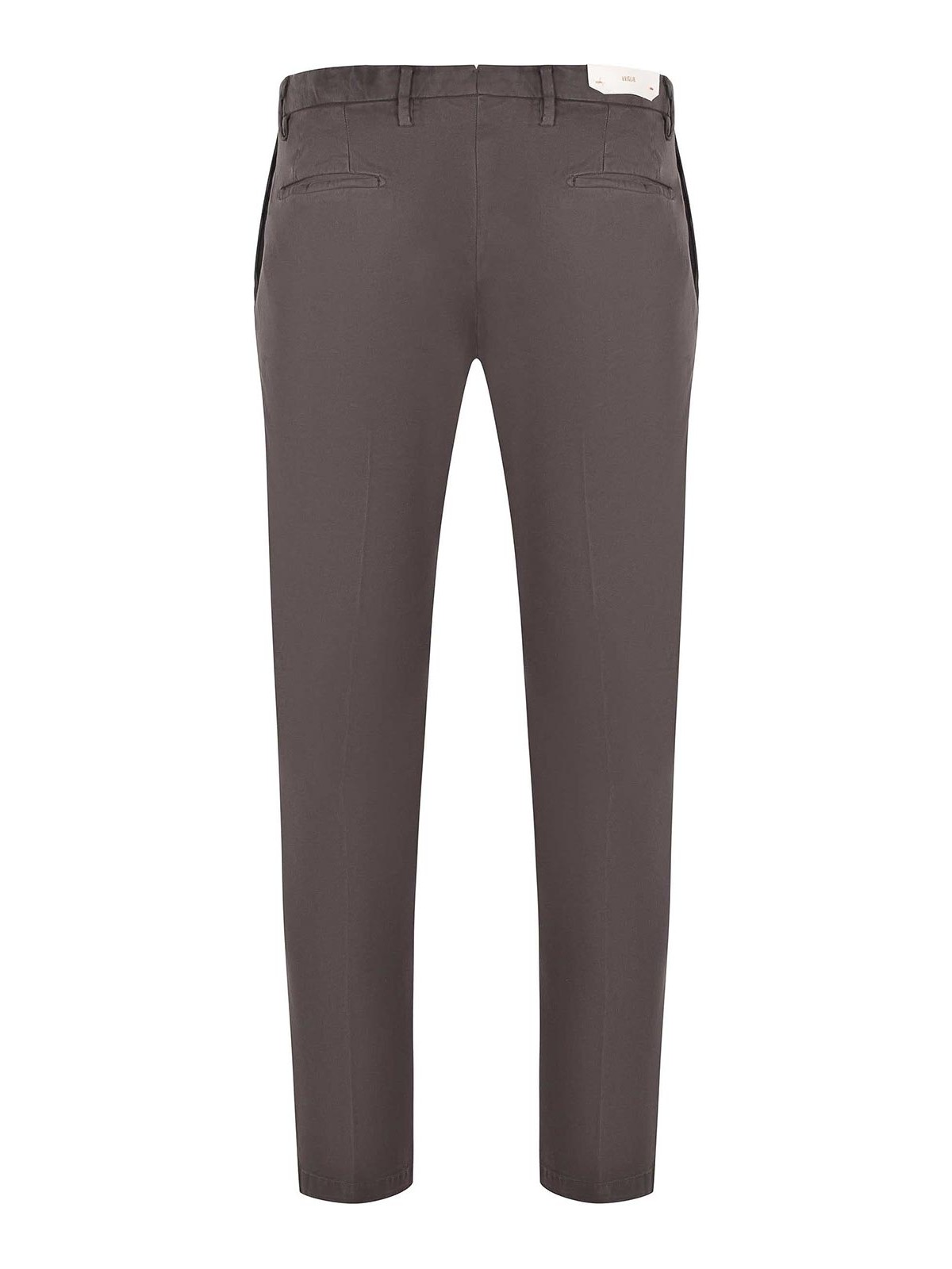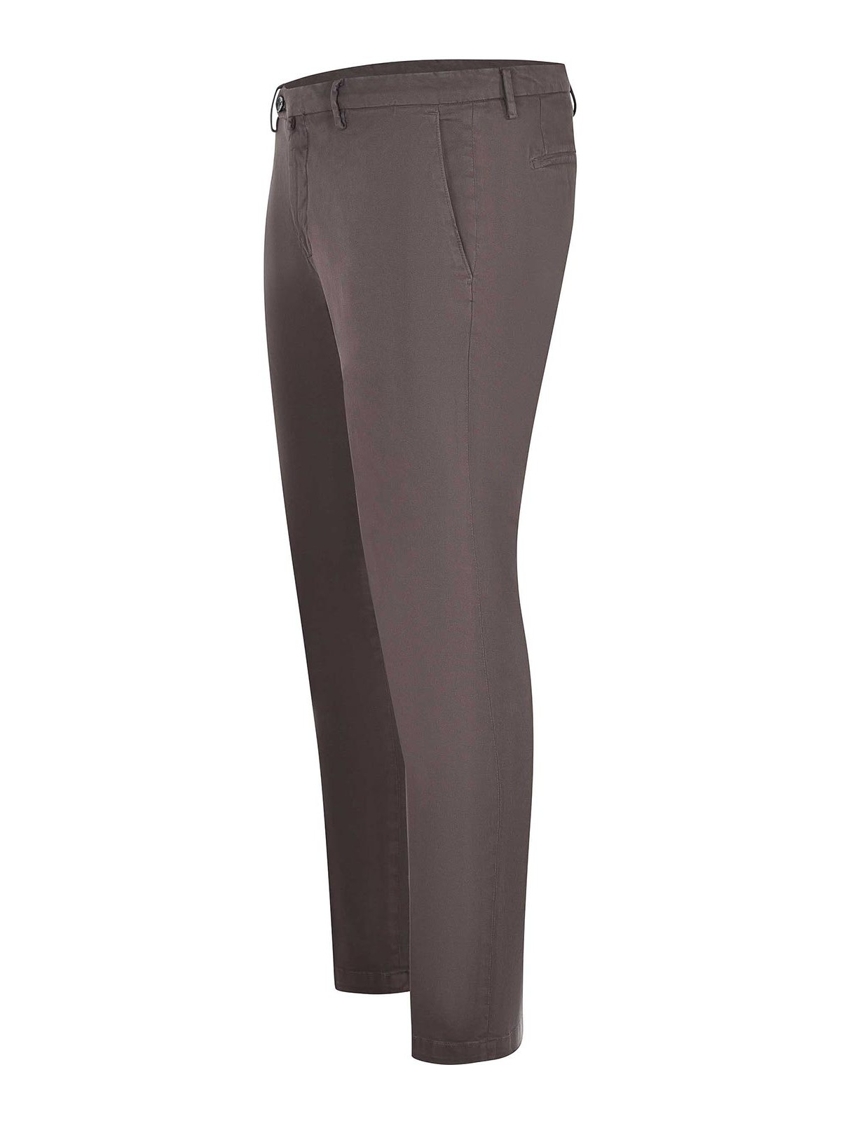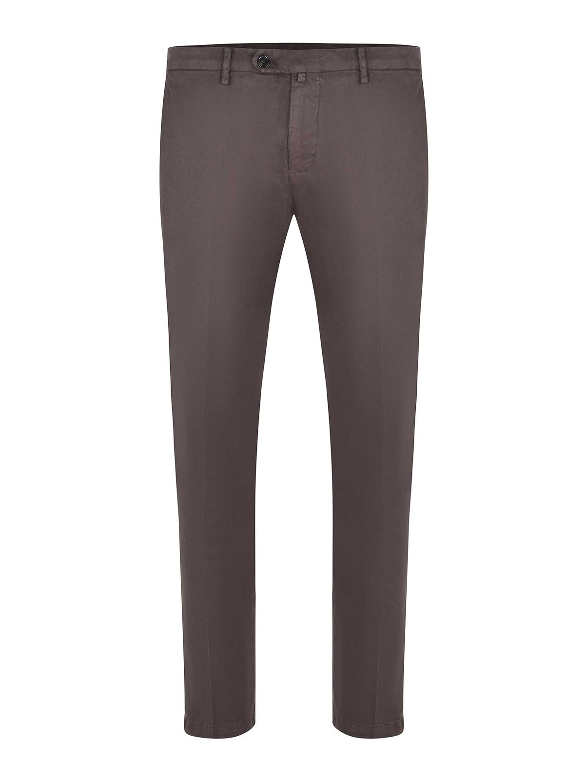 ブラウンコットン混紡のBrigliaパンツ、チノスタイル、ファスナーとボタン留め、ウエストにベルトループ、サイドポケット、バックポケット、97% コットン、3% エラステイン(イタリア製)