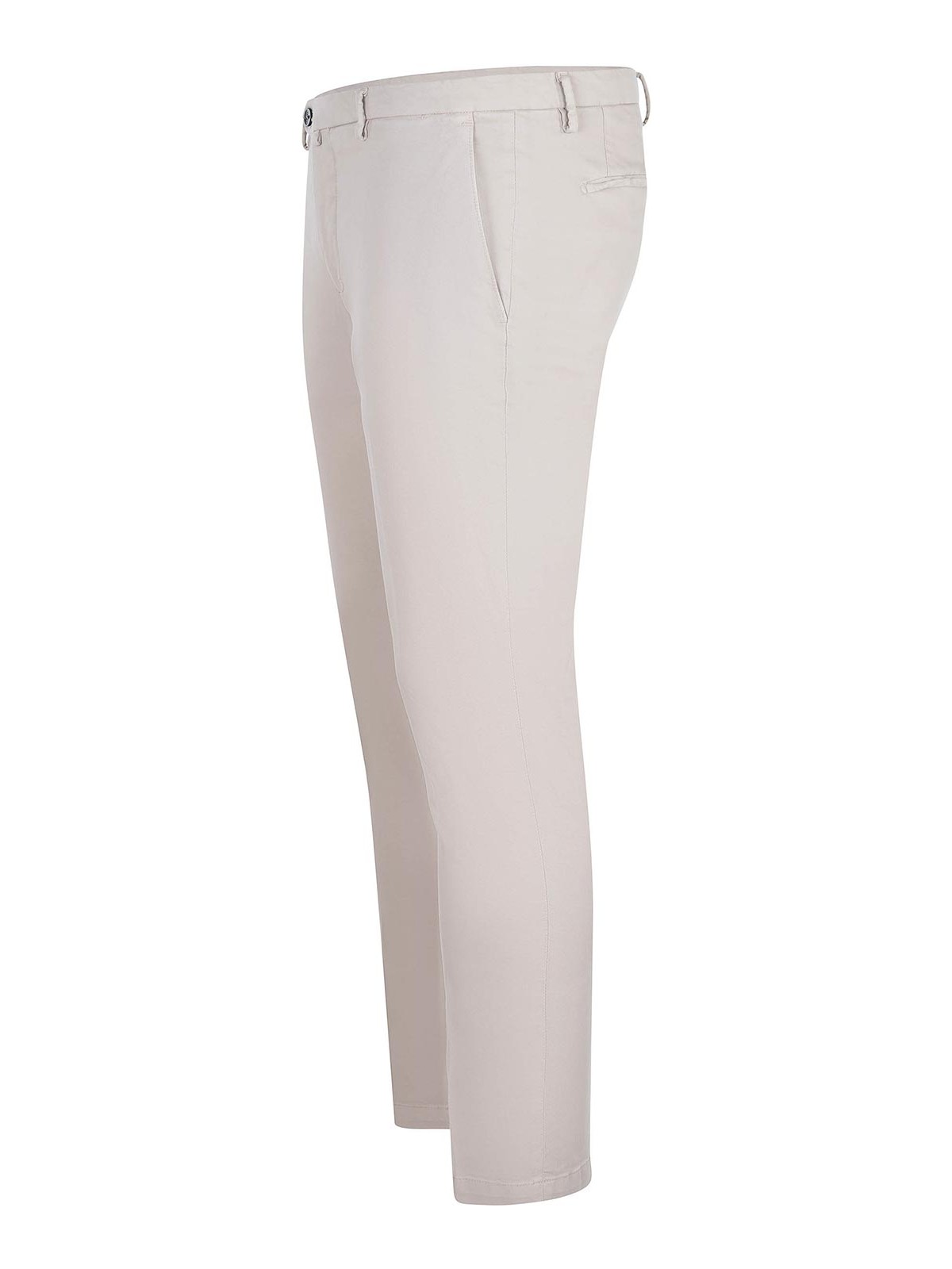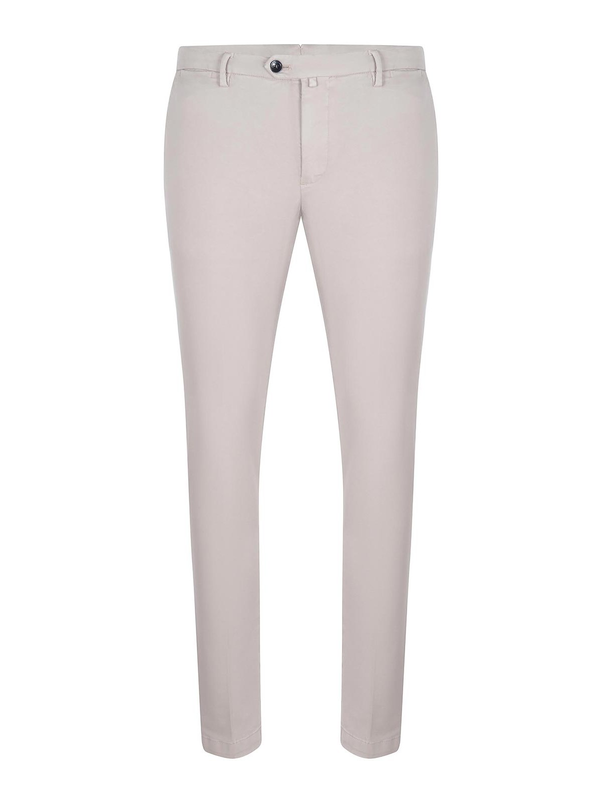 ベージュコットン混紡のBrigliaパンツ、チノスタイル、ジッパーとボタン留め、ウエストにベルトループ、サイドポケット、バックポケット、97% コットン、3% エラステイン(イタリア製)