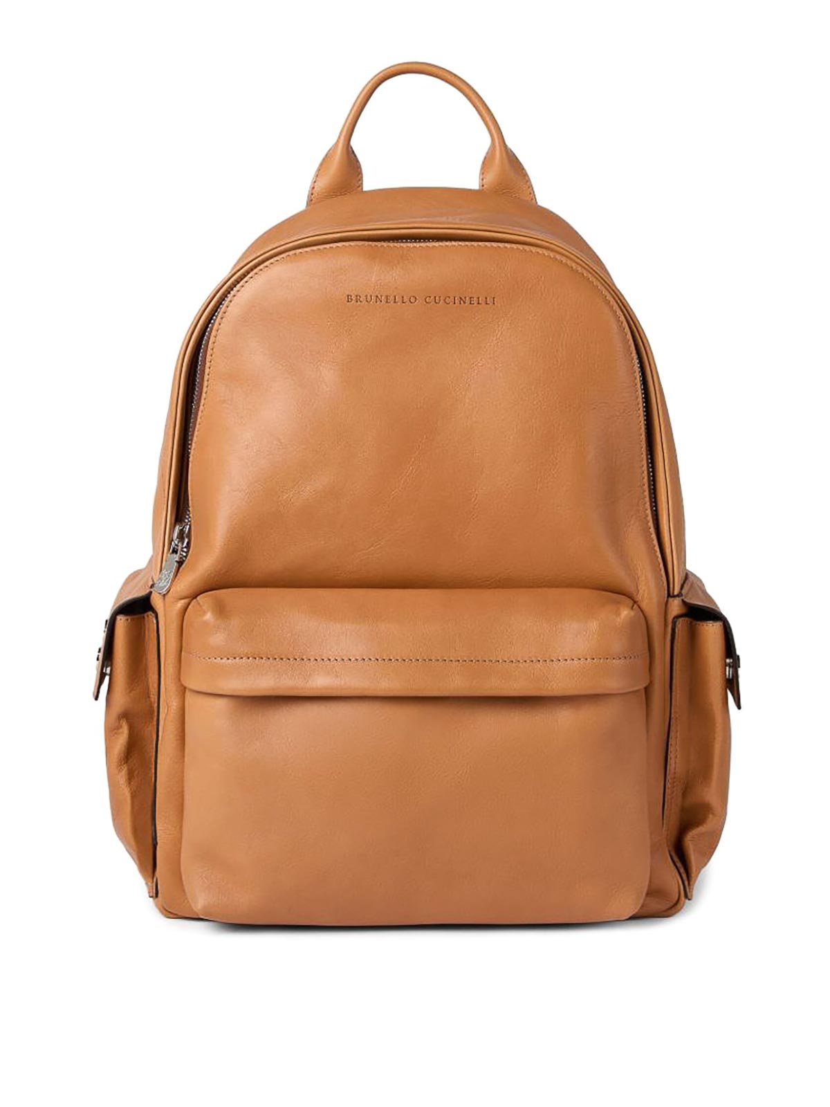 Origin Italyは、コニャックブラウンのトップにジップロゴがプリントされたフロントジッパーコンパートメントと、スナップボタン付きのサイドポケット2つ、調節可能なショルダーストラップ2つ、コンパートメント1つ、内部ジッパーポケット、内部ベローズポケット、内部ラップトップポケットを備えています。