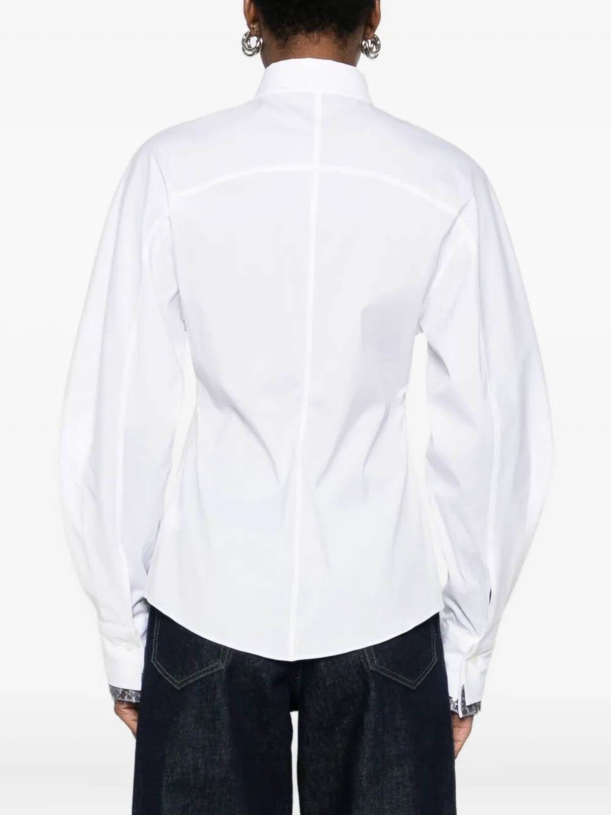 `装飾された白い綿の袖口、フロントボタン留め、長袖、先のとがった襟`