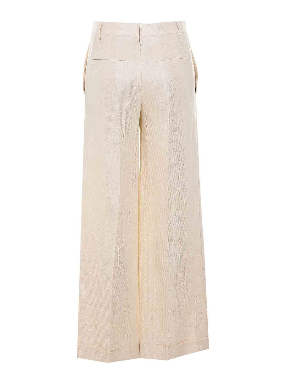 Brunello cucinelli ベージュパンツ、ルレックス、ボタン、フック、ジッパー、サイドポケット、ワイドレッグ