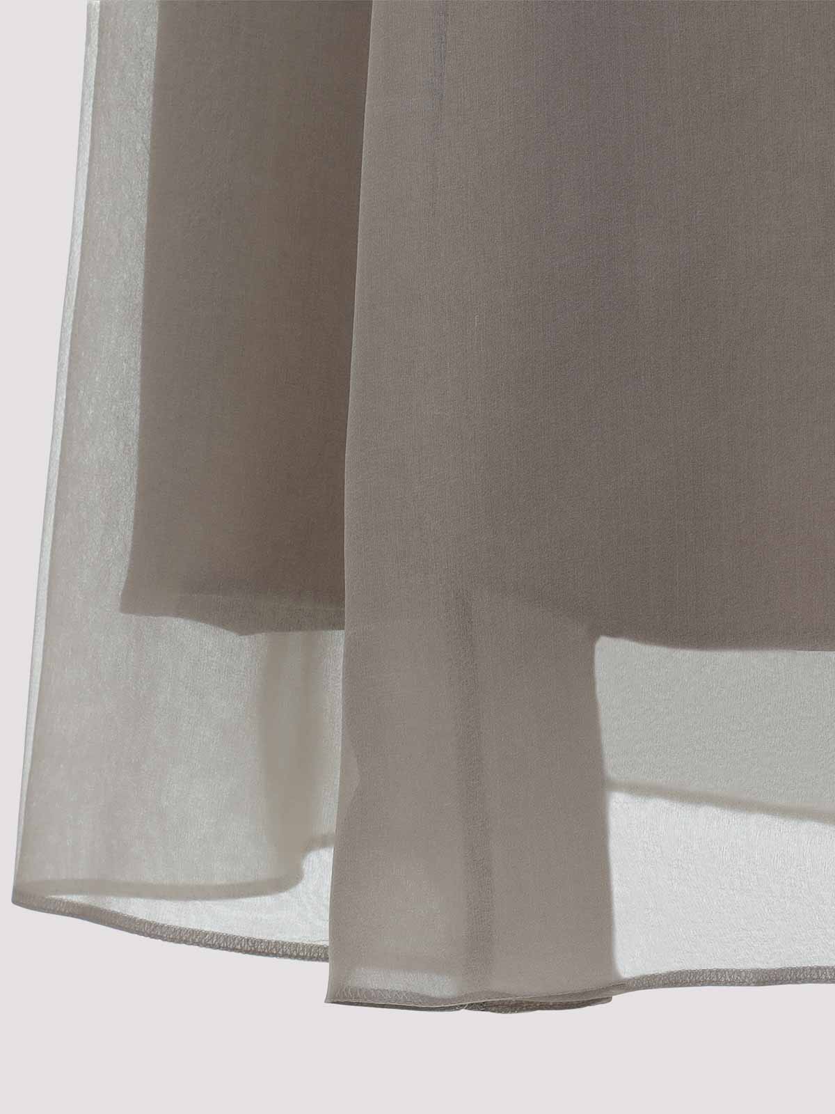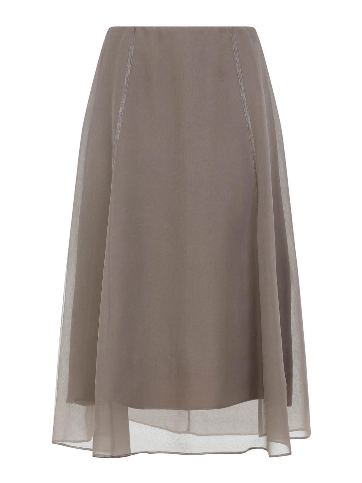 Brunello cucinelli ロープブラウンシルクチュールスカート。ピュアロープブラウンシルクスカート、マルチペイン構造、バックファスナー、Aライン、ストレートヘム、トーナルチュールパネル、トーナルライニング。