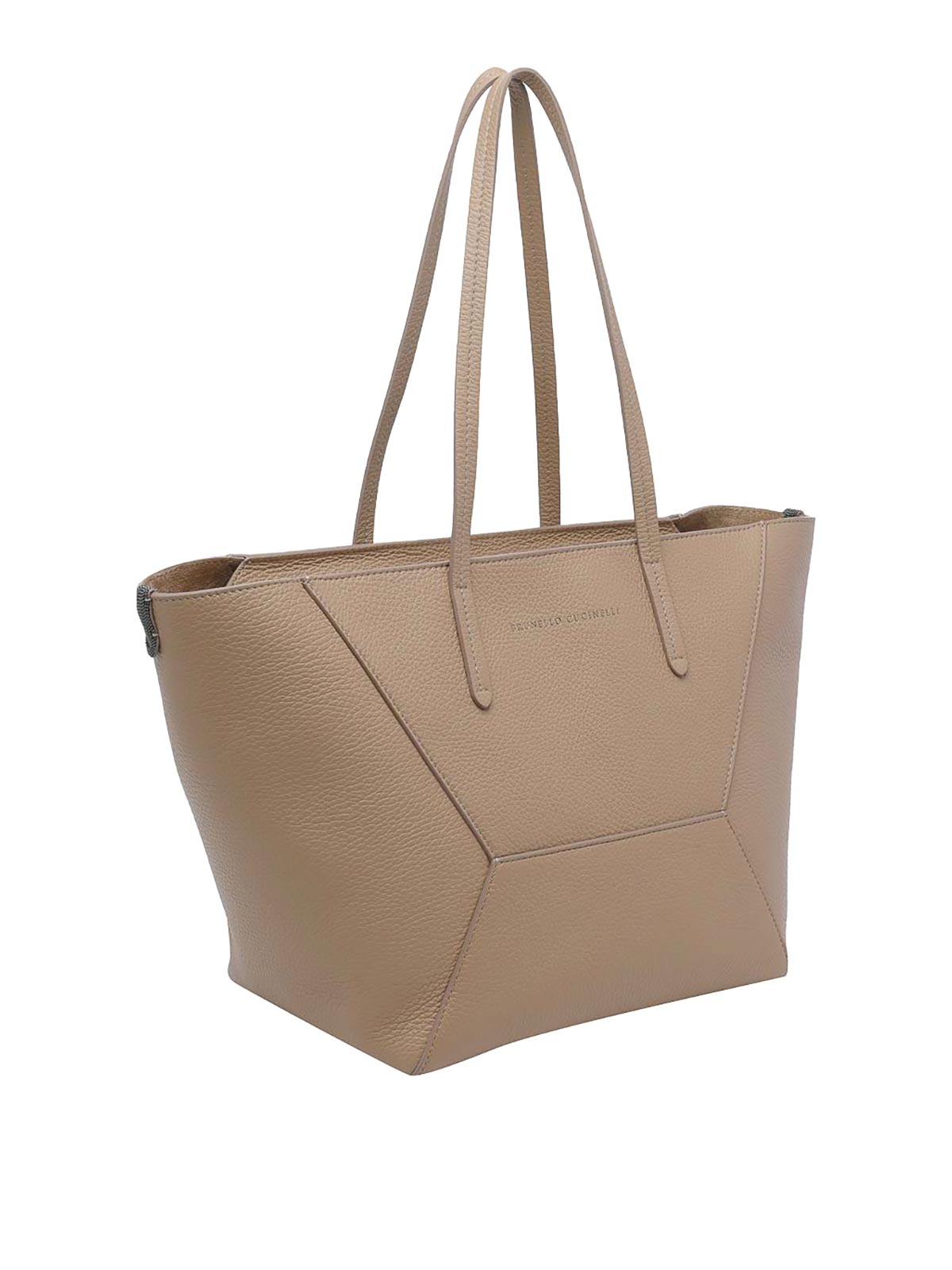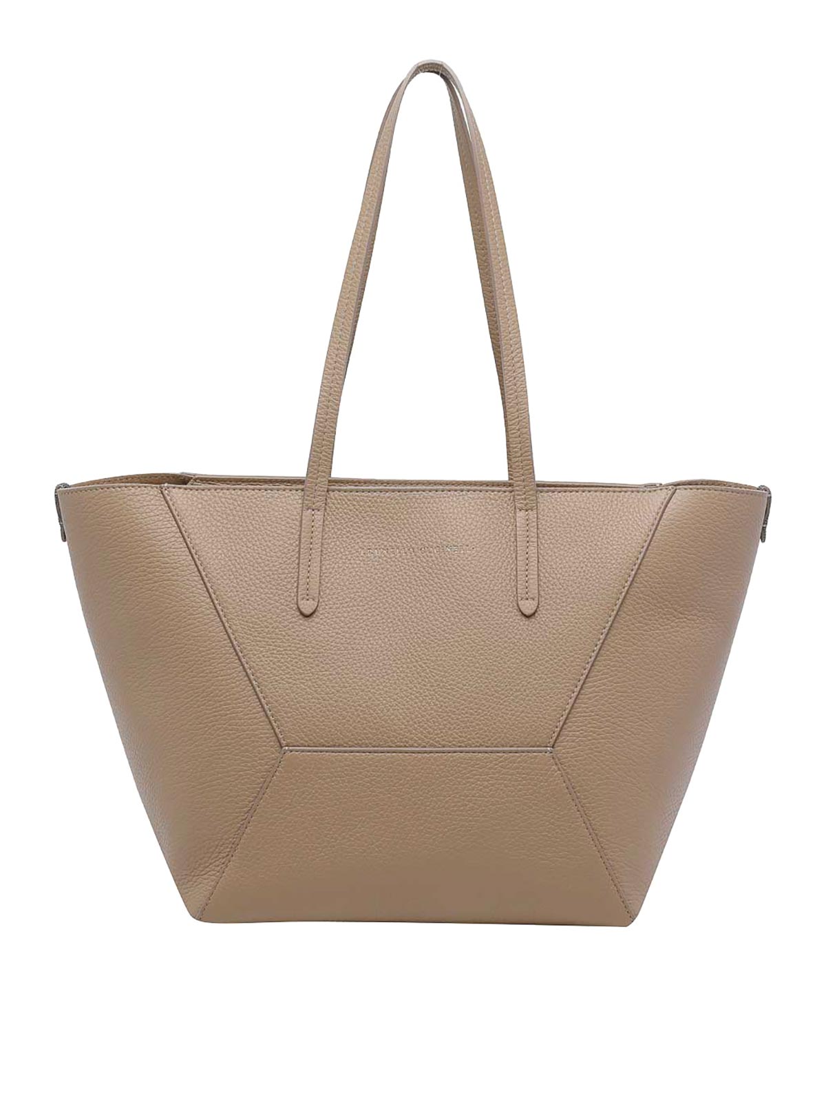 Brunello cucinelli ベージュデュオショルダーバッグ、ファスナー開閉、ファスナー付きインナーポシェット、ハンドル2本