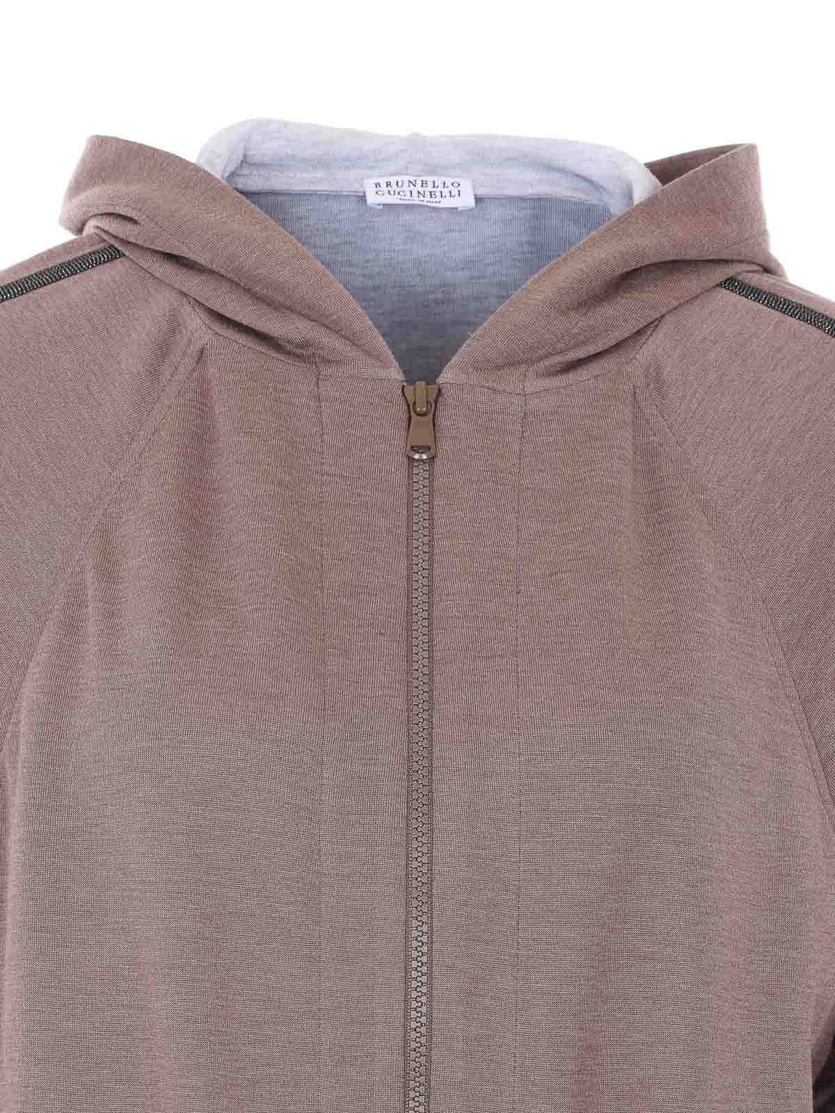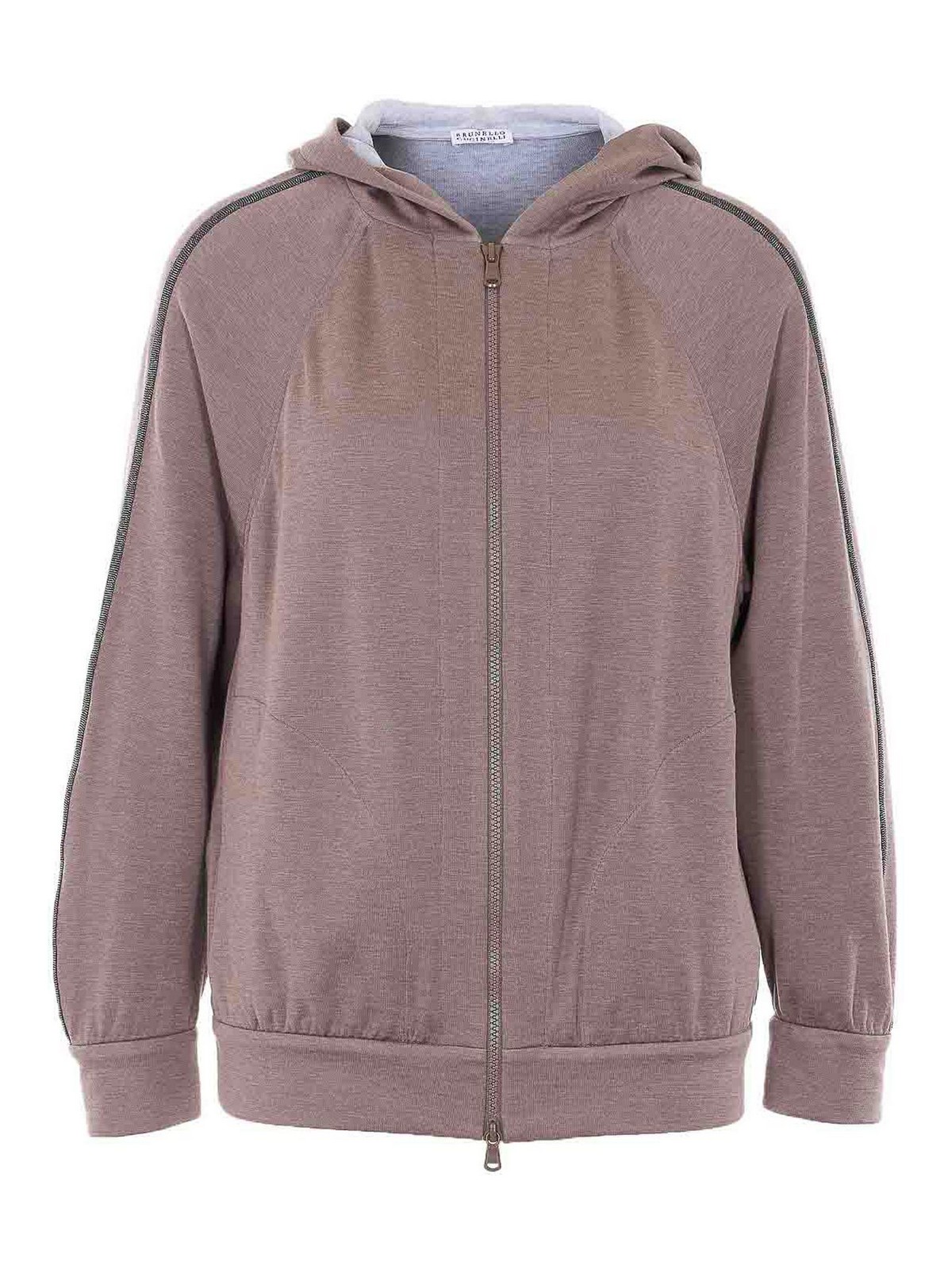 Brunello cucinelli モーヴスウェットシャツ、フード、フロントファスナー開閉、サイドポケット、フードにモニールロゴディテール