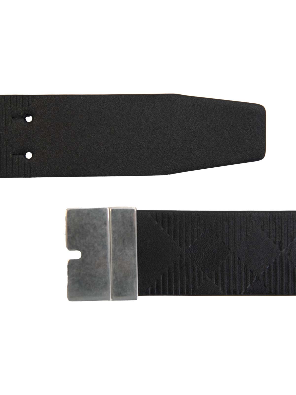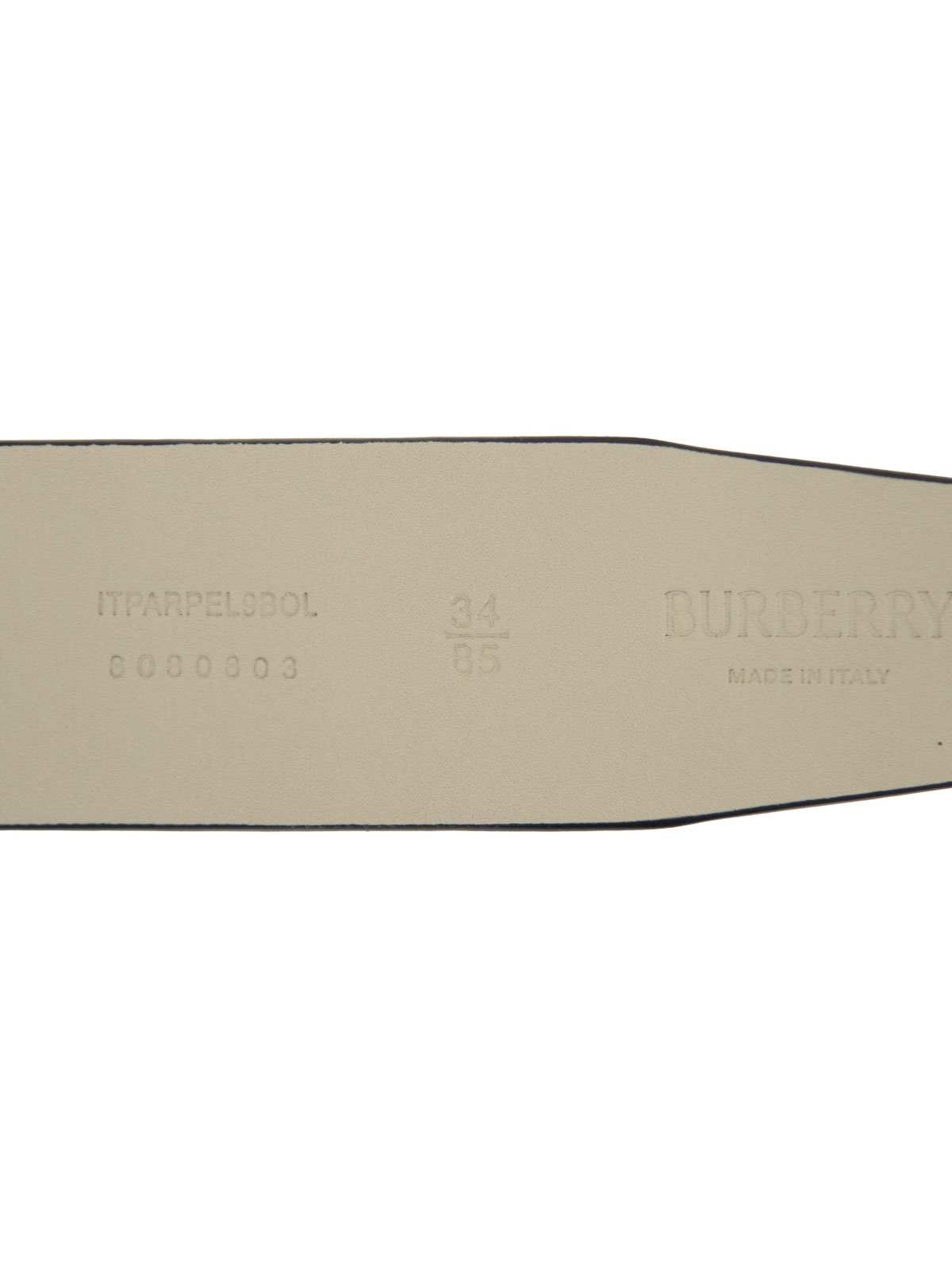 バーバリーメンズベルト。全体がレザー製。リバーシブル。インターロッキングバックルで調節可能。ゴールドカラーのメタルで装飾されたディテール付き。イタリア製高さ (cm): 3.5 長さ (cm): 100 (85)、104.75 (90)、109.5 (95)、114.25 (100)、119 (105)