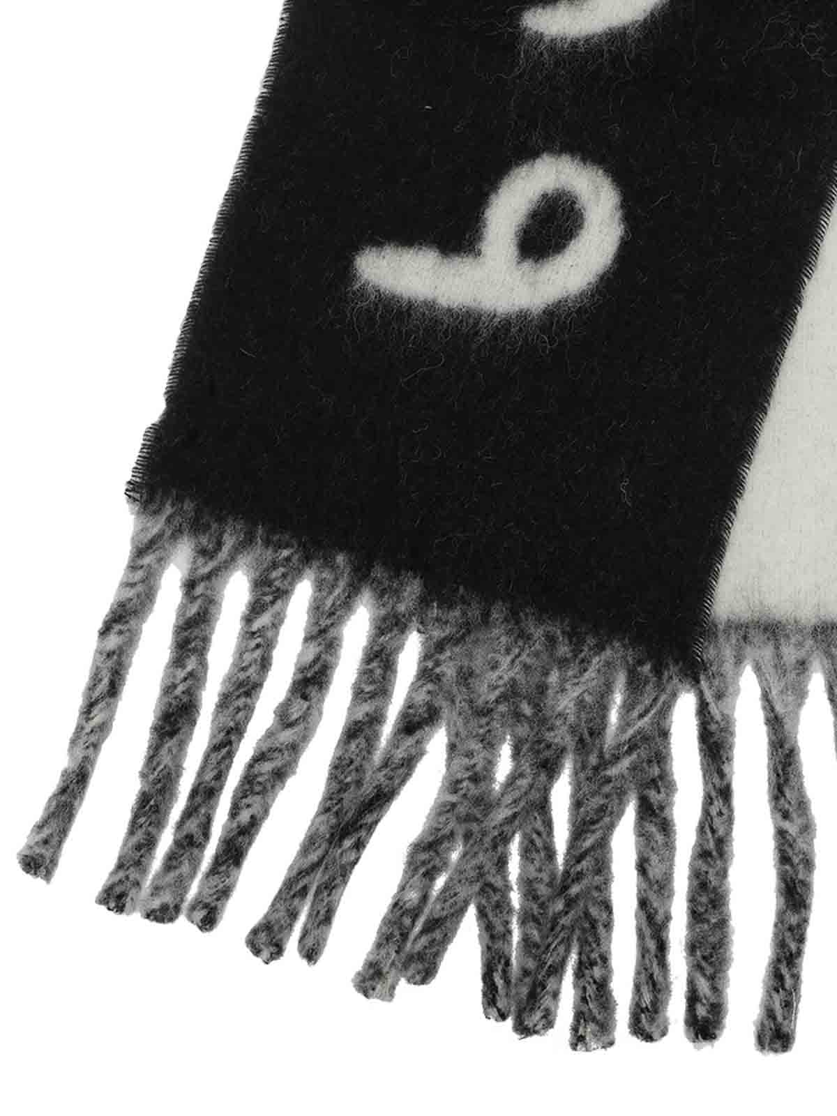 ロゴフリンジ付きブラックスカーフデザイナーカラー名:ブラック
