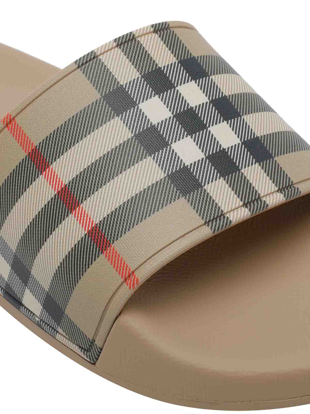 バーバリーベージュチェックサンダル、ラウンドトウ、チェックモチーフ