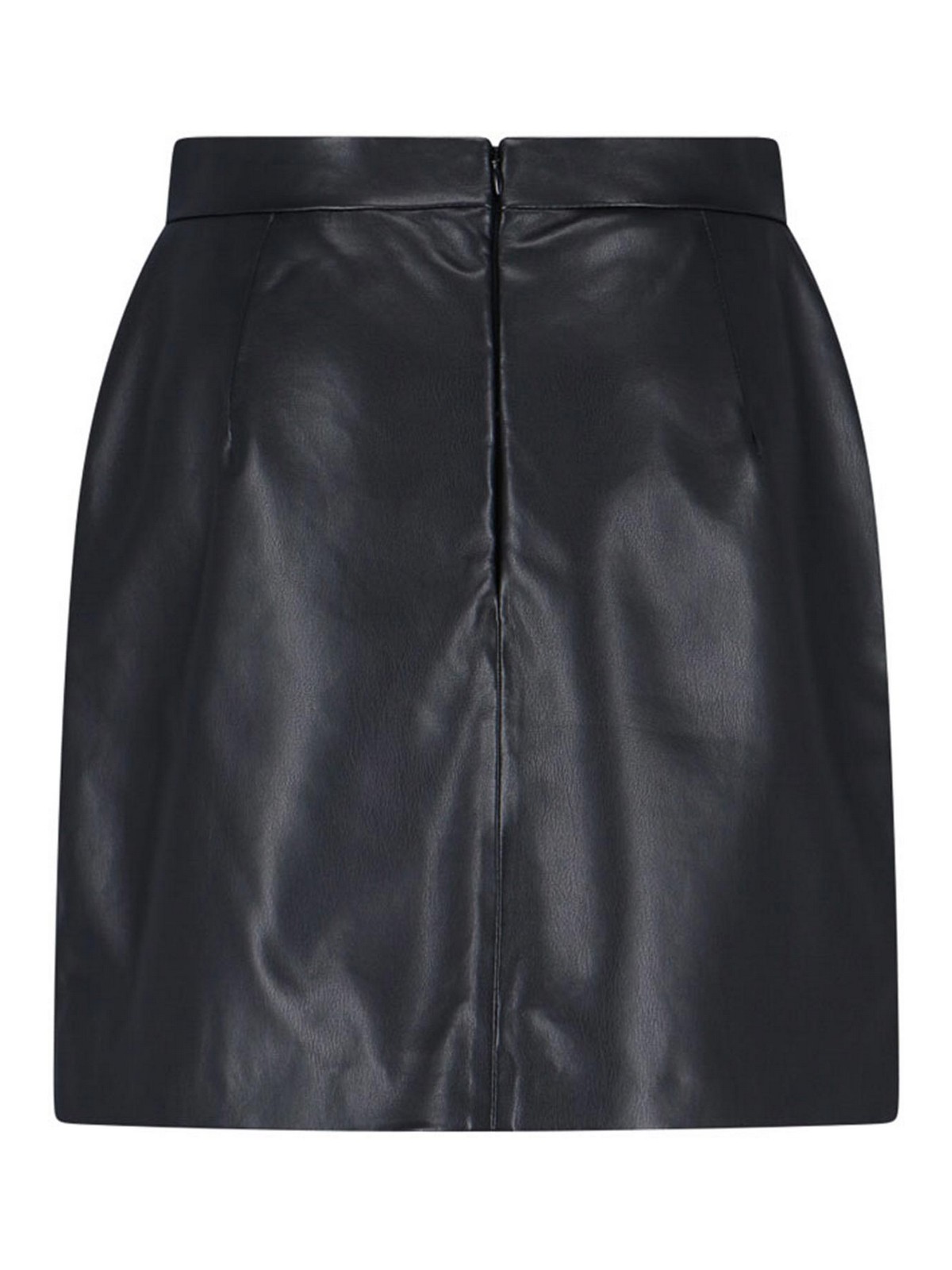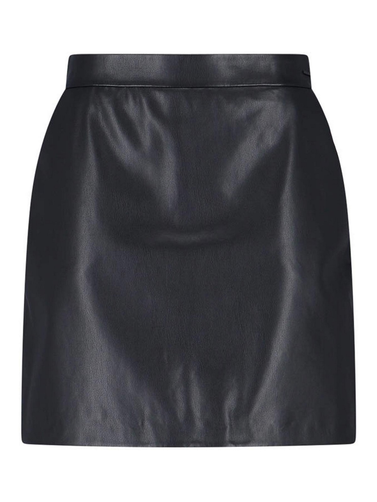 Calvin Klein レザーミニスカート、認定書付き、バックジッパー付き斜めポケット2つ、ストレートヘム