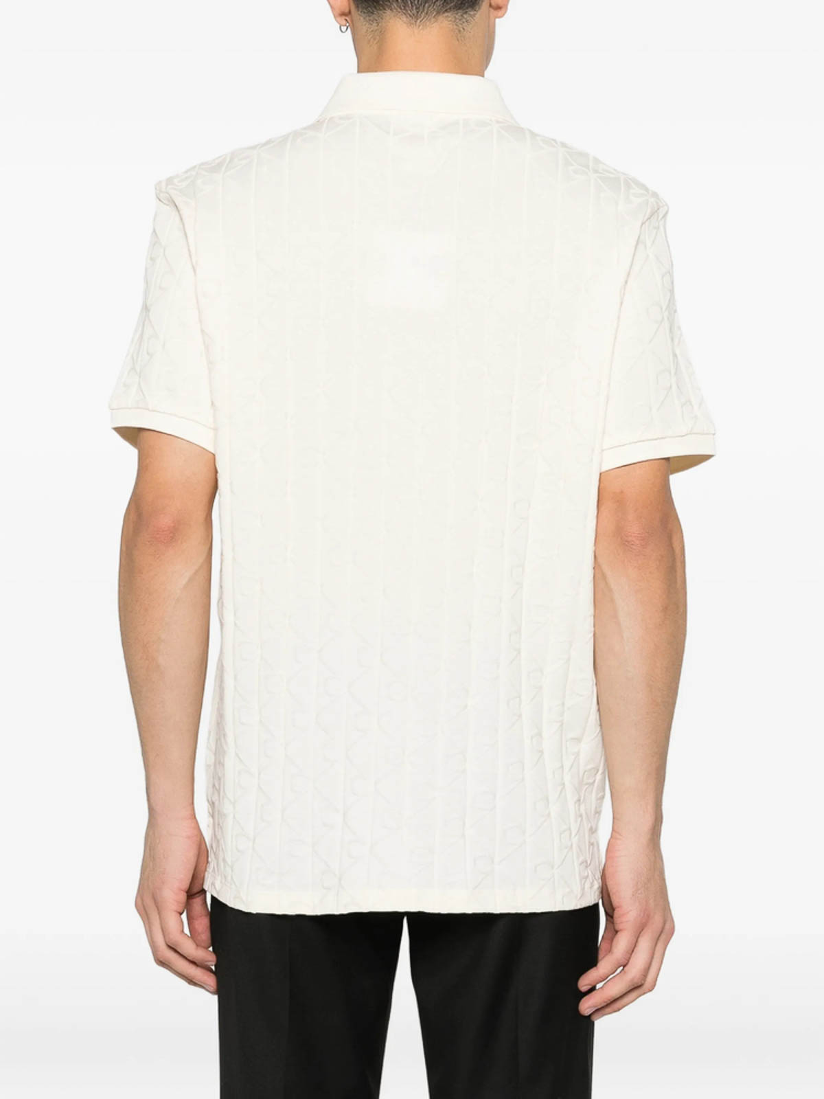 オフホワイトジャカードロゴモチーフショートスリーブポロネック
