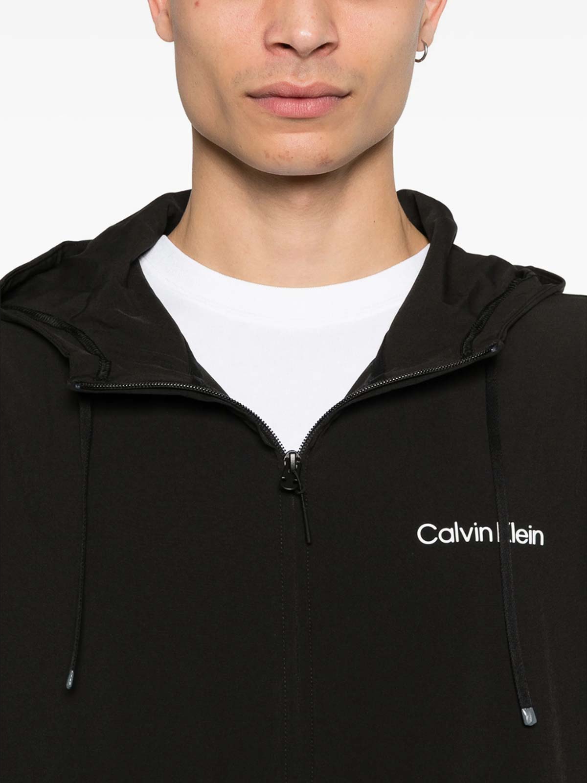 ブラックフードドローストリングジップファスナー