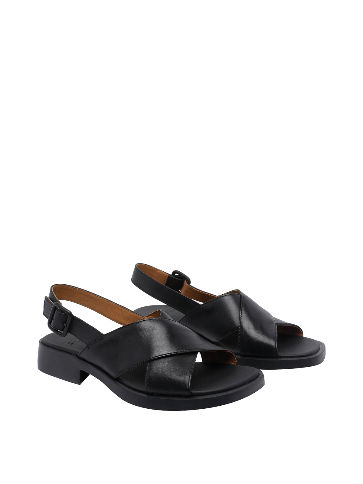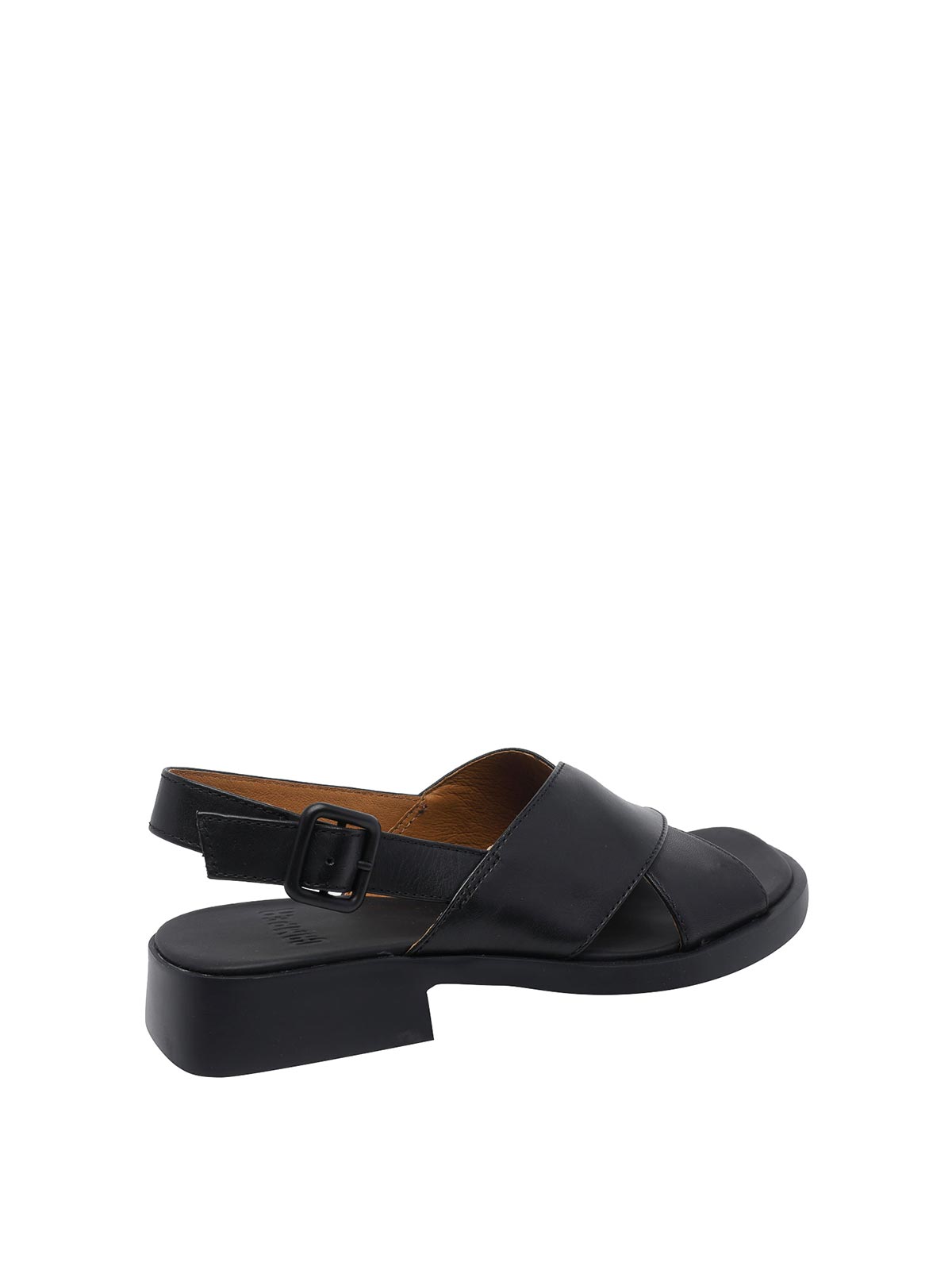 キャンパーブラックダナサンダル、バックルクロージャー、スクエアトウ、レザーアッパー