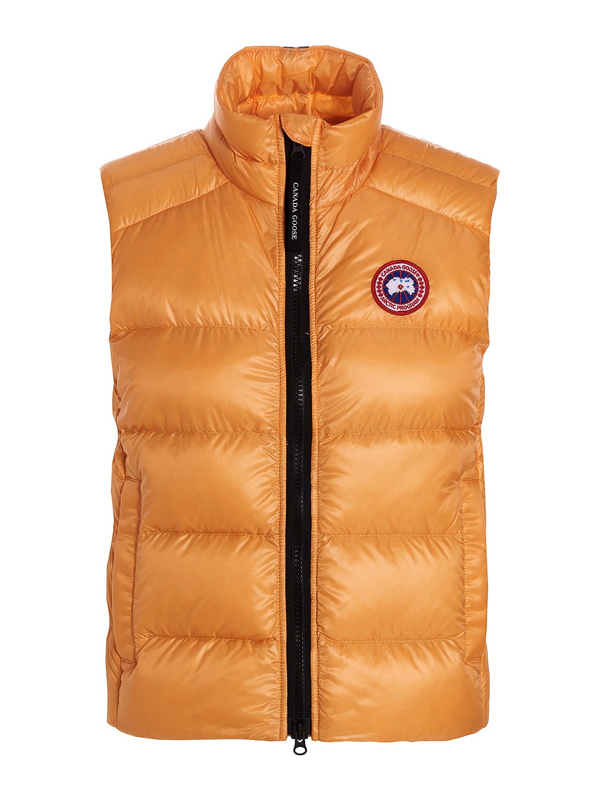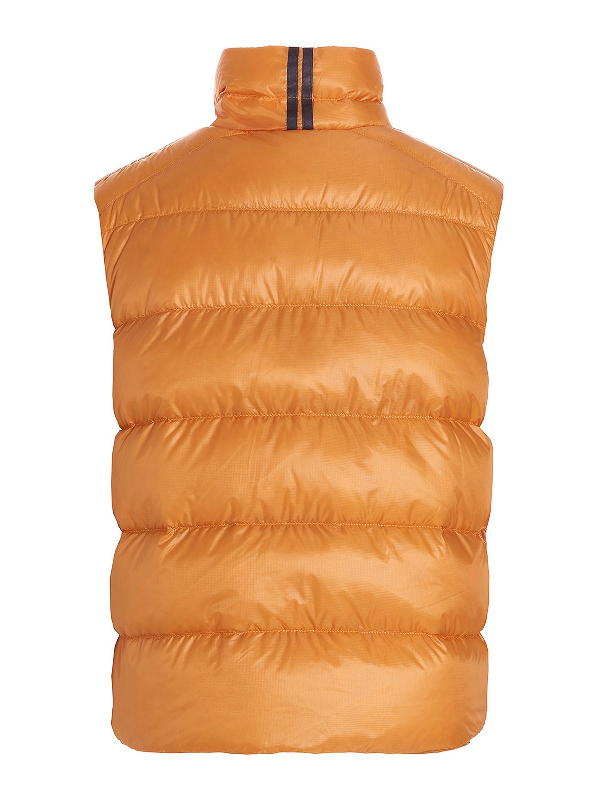 サイプレスナイロンベスト、ダウンパッド、ジップクロージャー、ポケット、ロゴパッチが特徴です。