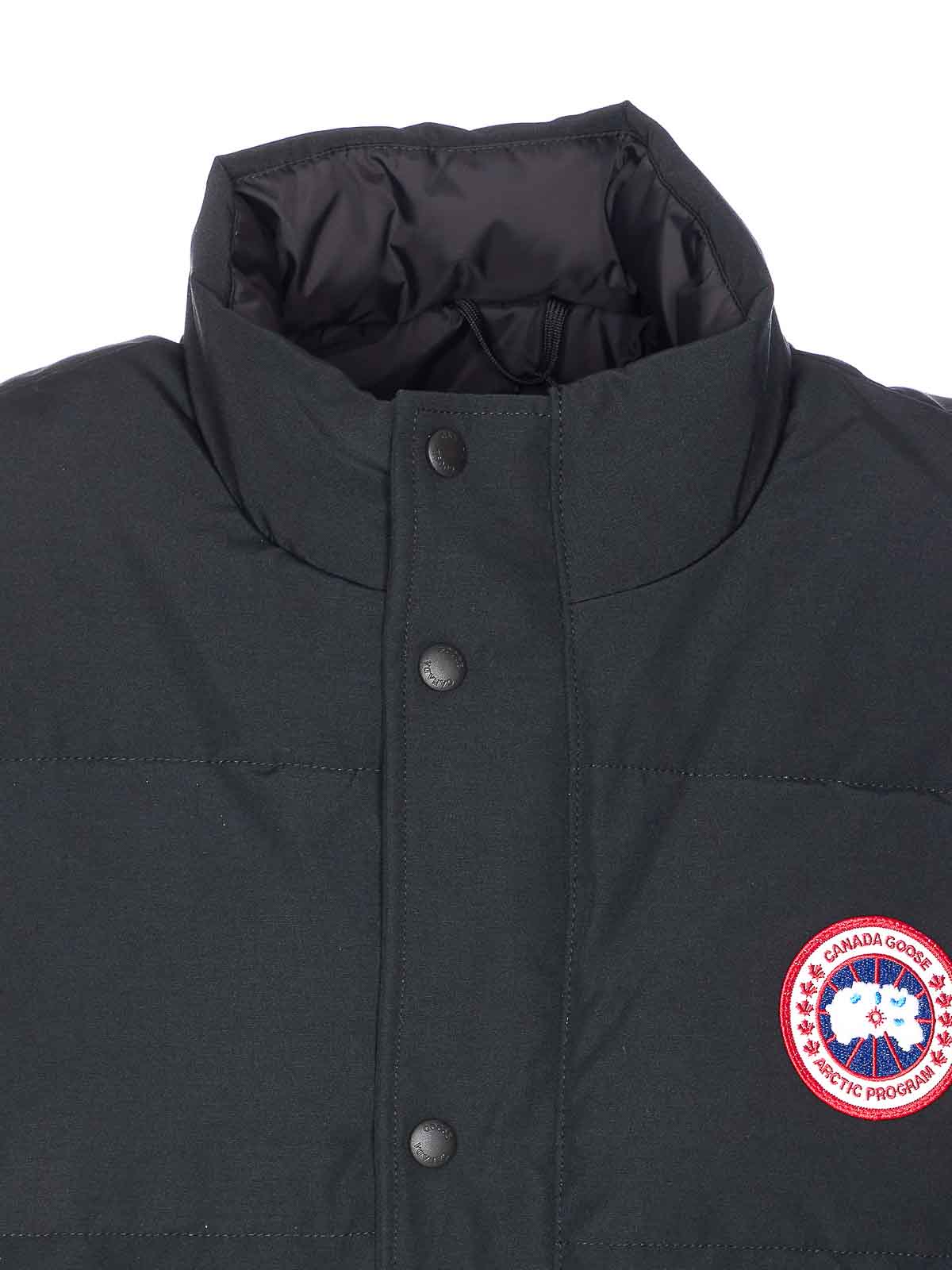カナダグースブラックフリースタイルベスト、サイドポケットにジッパー付きノースリーブパッチロゴプリントロゴ入りロゴパッド入りデザイナーカラー名:ブラック