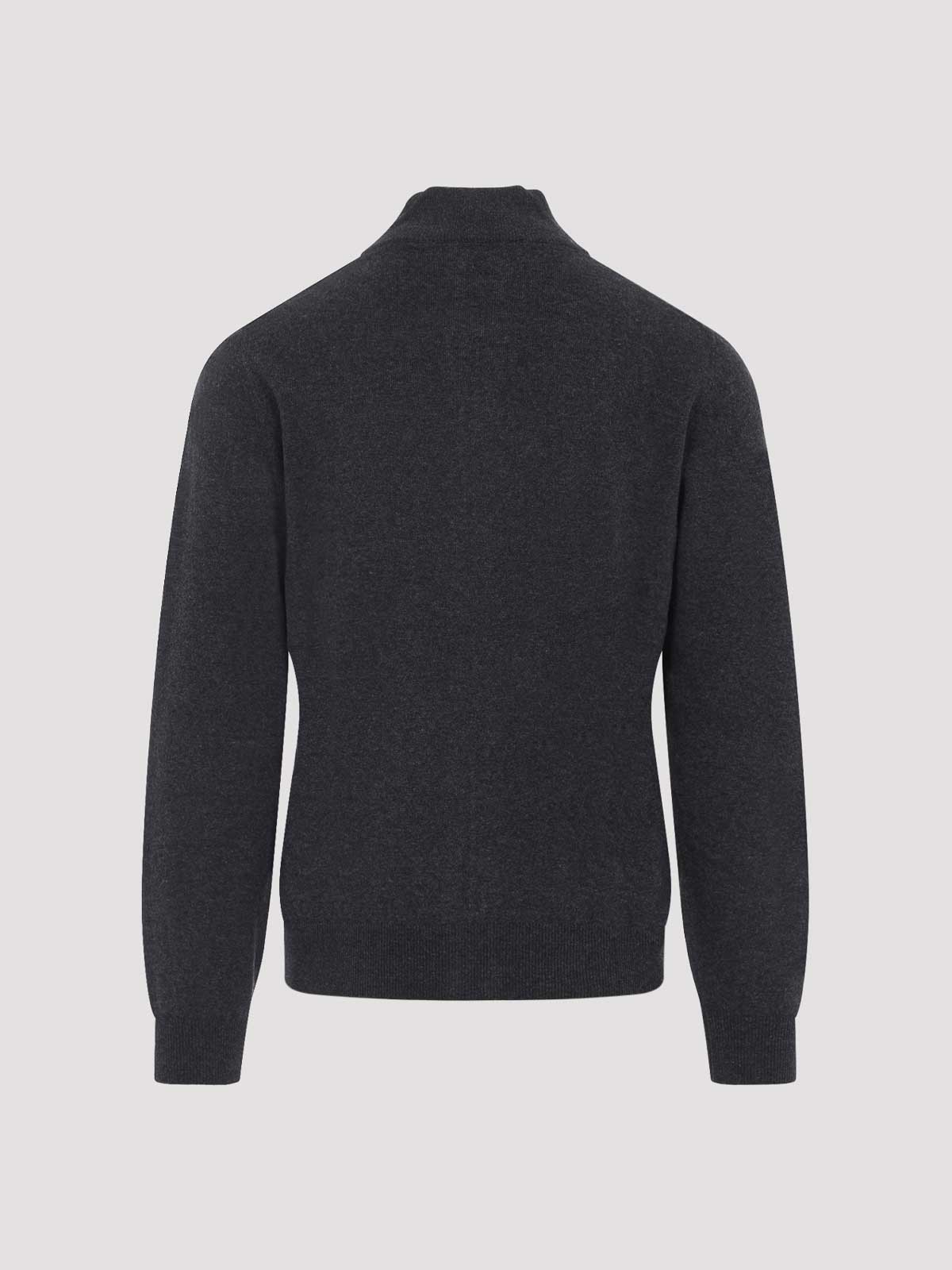 Canali フルジップハイネックダークグレーウールカーディガン。ダークグレーのウールとカシミヤのニット製、スタンディングカラー、フロントツーウェイジッパー、ロングスリーブ、縁はリブ編み。