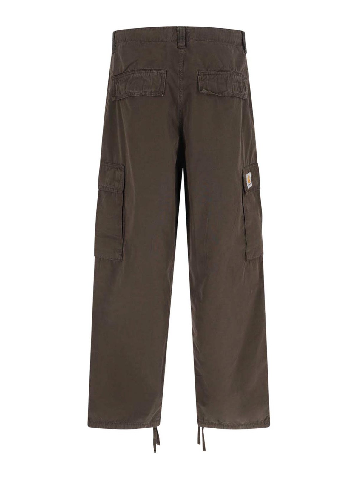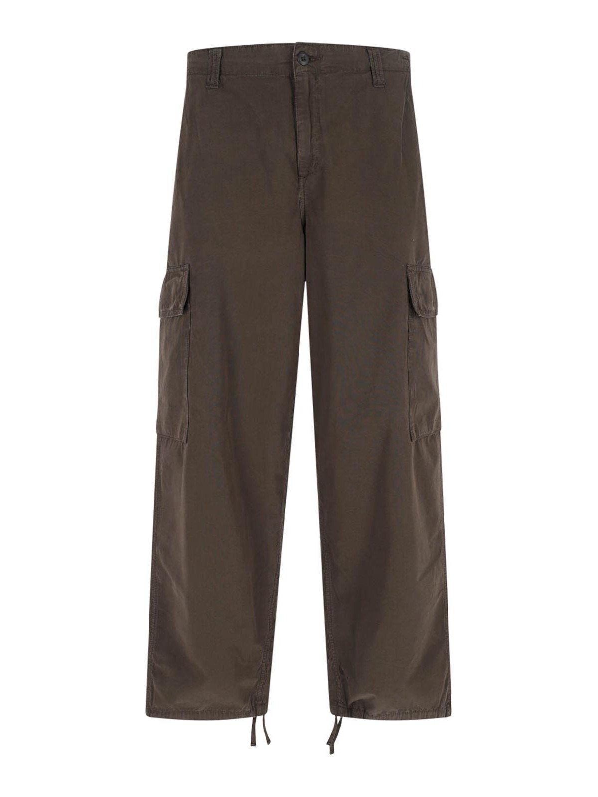 Carhartt wip kade カーゴパンツ、ブラウンコットン、ミディアムウエスト、ベルトループ、ボタンとジップドローストリングクロージャー、サイドポケット2つ、サイドカーゴポケット2つ、ロゴラベルのディテール、バックボタンフラップポケット2つ、ボトムで調節可能、ストレートレッグ。