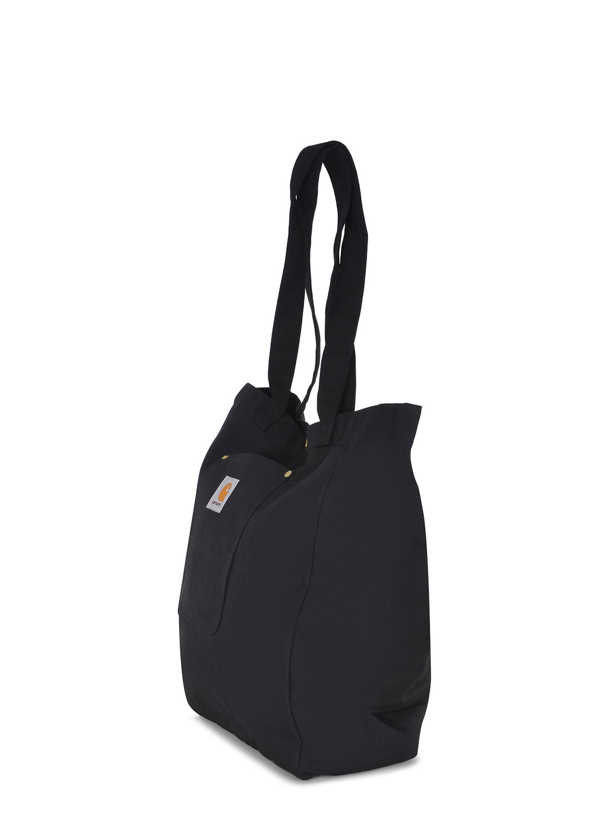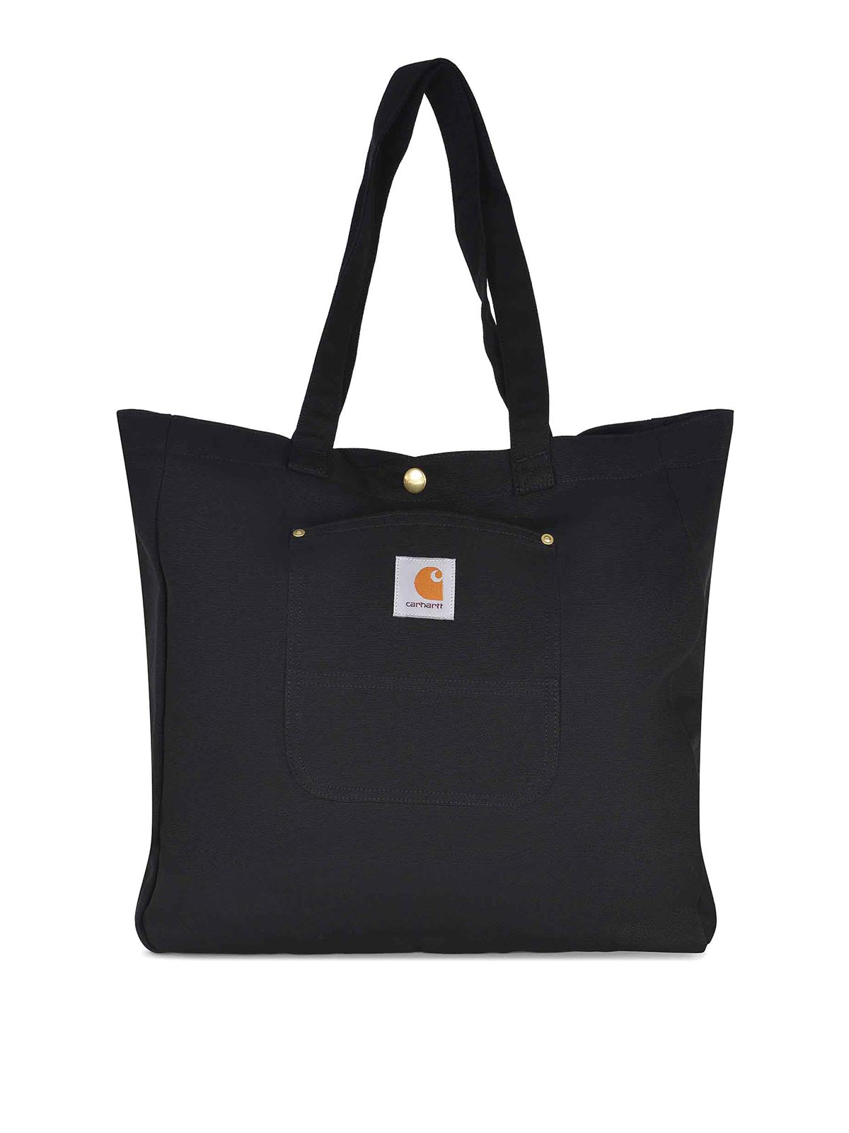 ブラックコットン製カーハートバッグ、ハンドル2つ、スナップボタン留め、ファスナー付き内壁ポケット、コントラストラベルが貼られた前面外ポケット、容量:19.8 L 高さ:40 cm 長さ:38 cm 幅:13 cm 100% コットン