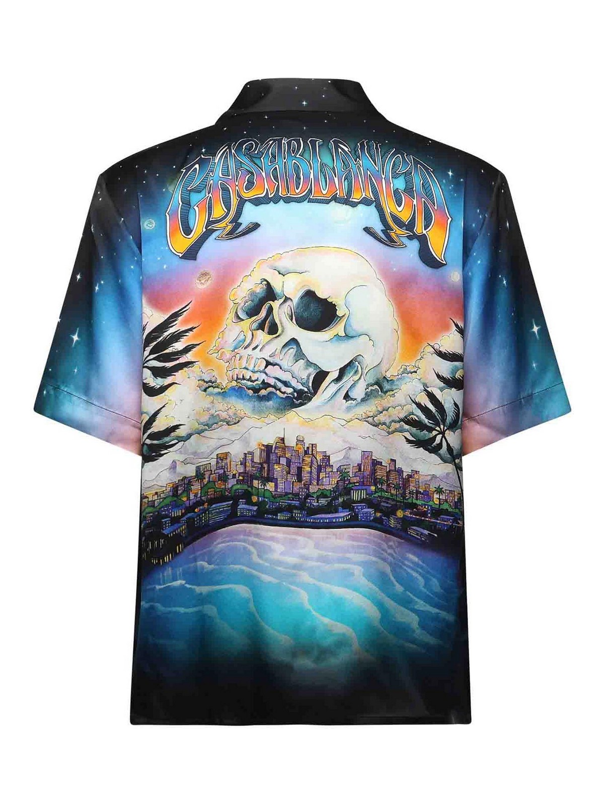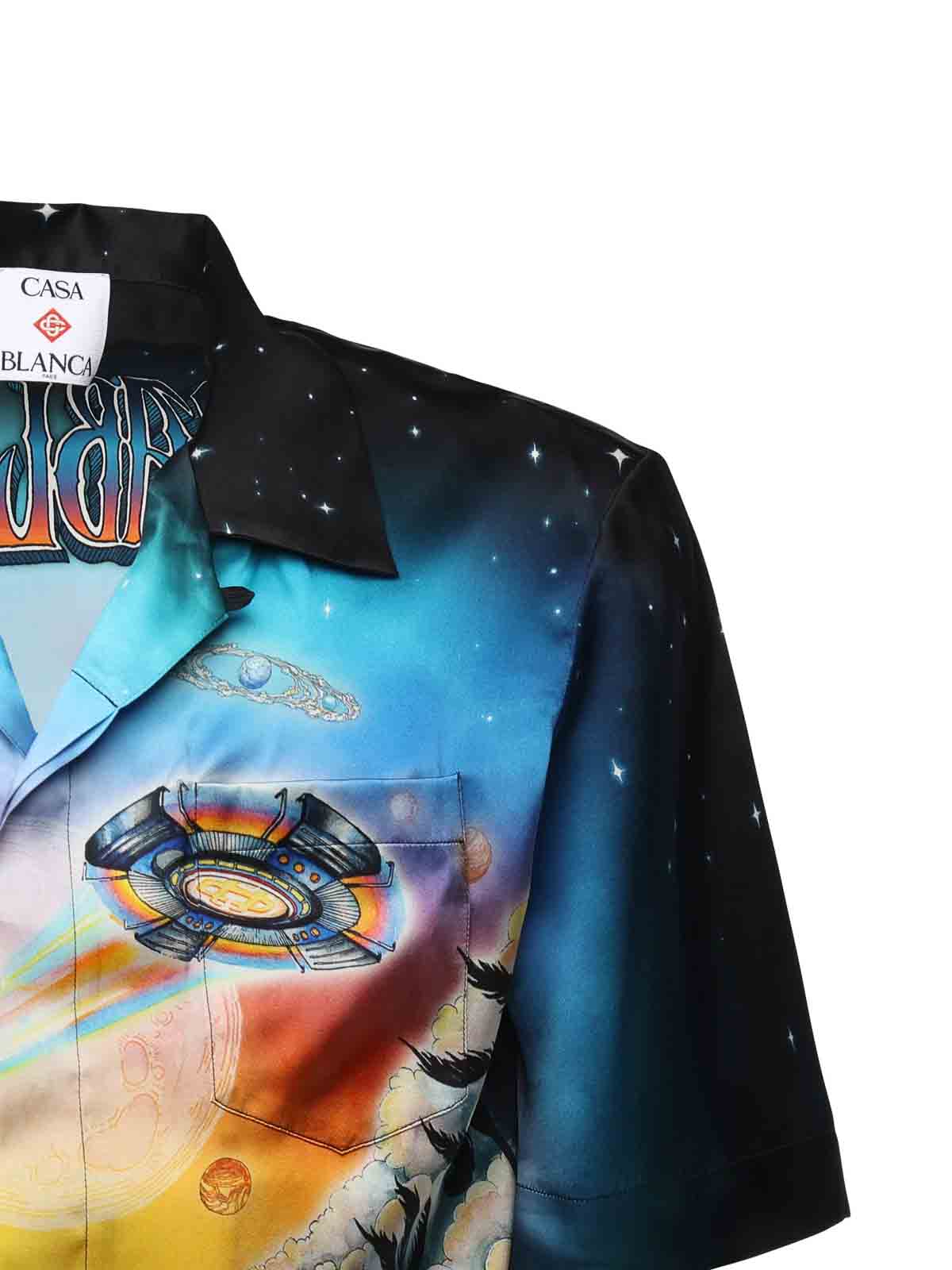 シルクサテン製、キューバンカラー、パッチチェストポケット、隠しボタン留め、背面にプリント、イタリア製、写真のサイズはS、デザイナーカラー:マルチカラー