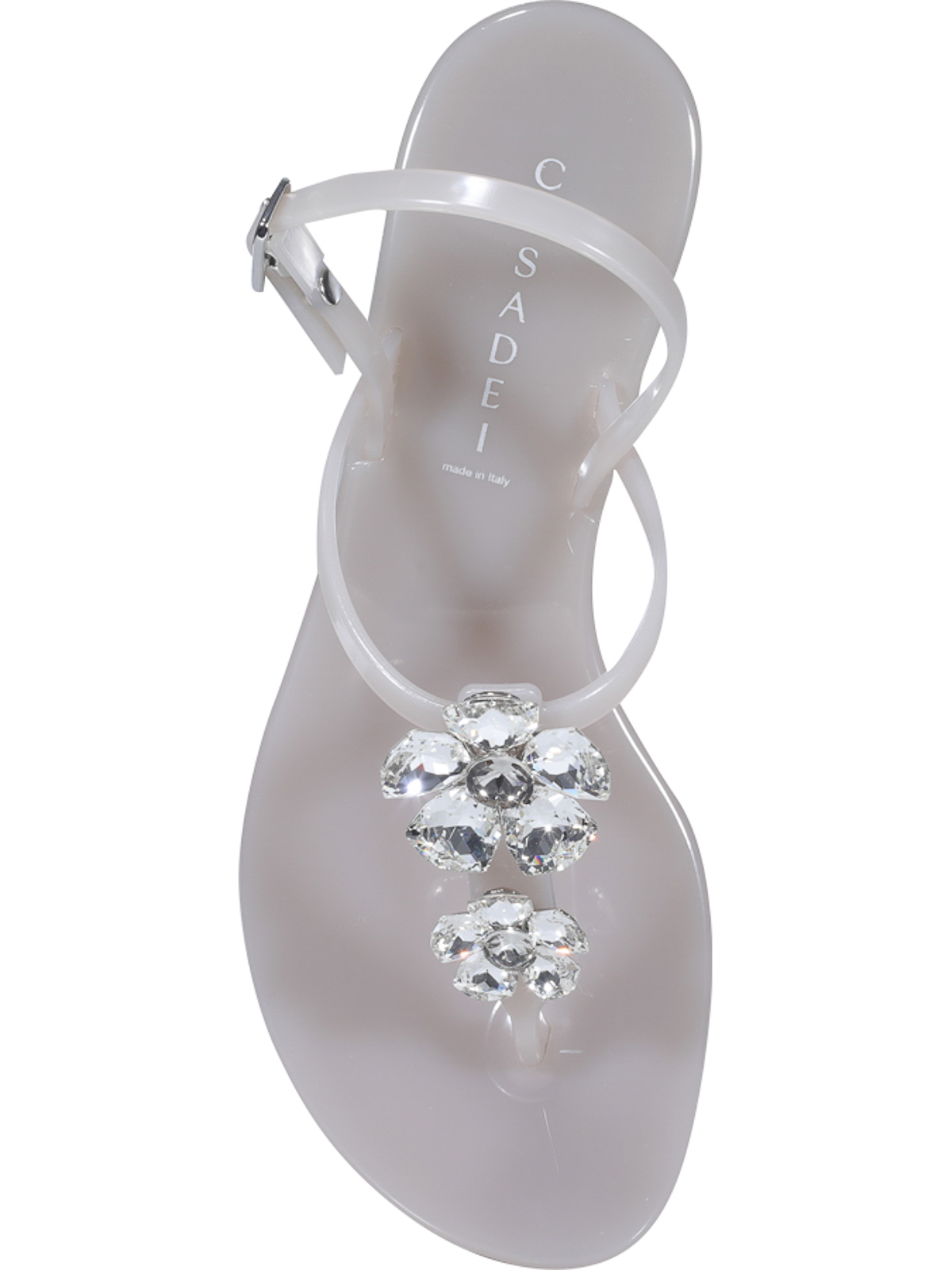 Casadei シルバーゼリーサンダルバックルクロージャークリスタルディテールラウンドトウ