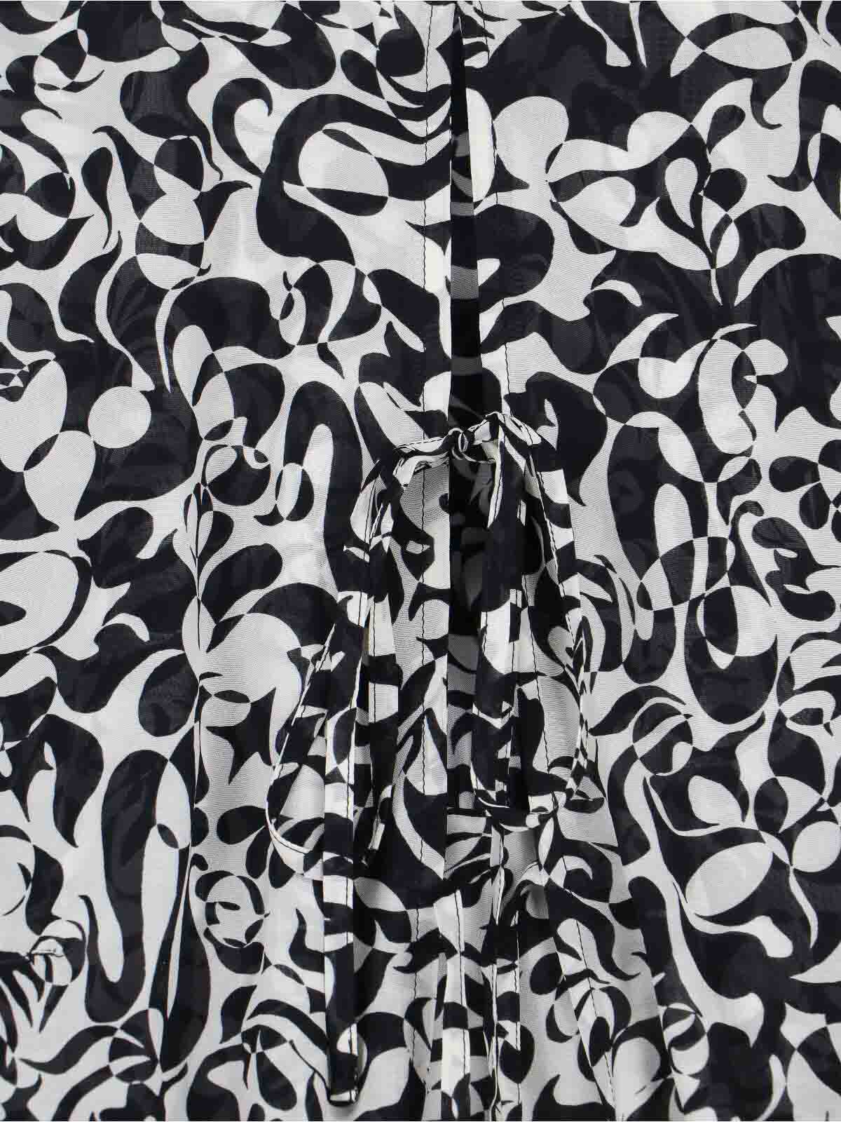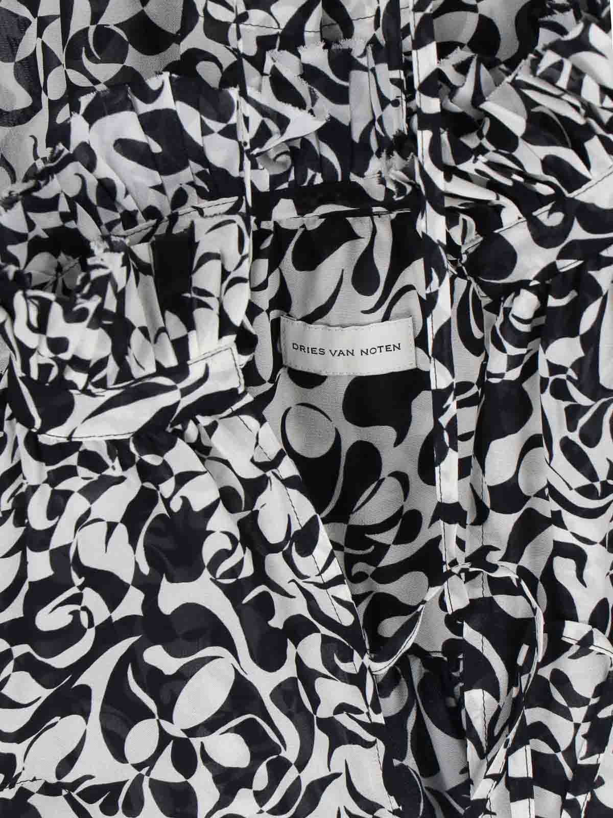 Catya dries van noten シャツ、ブラックビスコース製、全面プリント柄、スタンドアップカラー、レースクロージャー、ロングスリーブ、袖口にレース、カーブヘム。