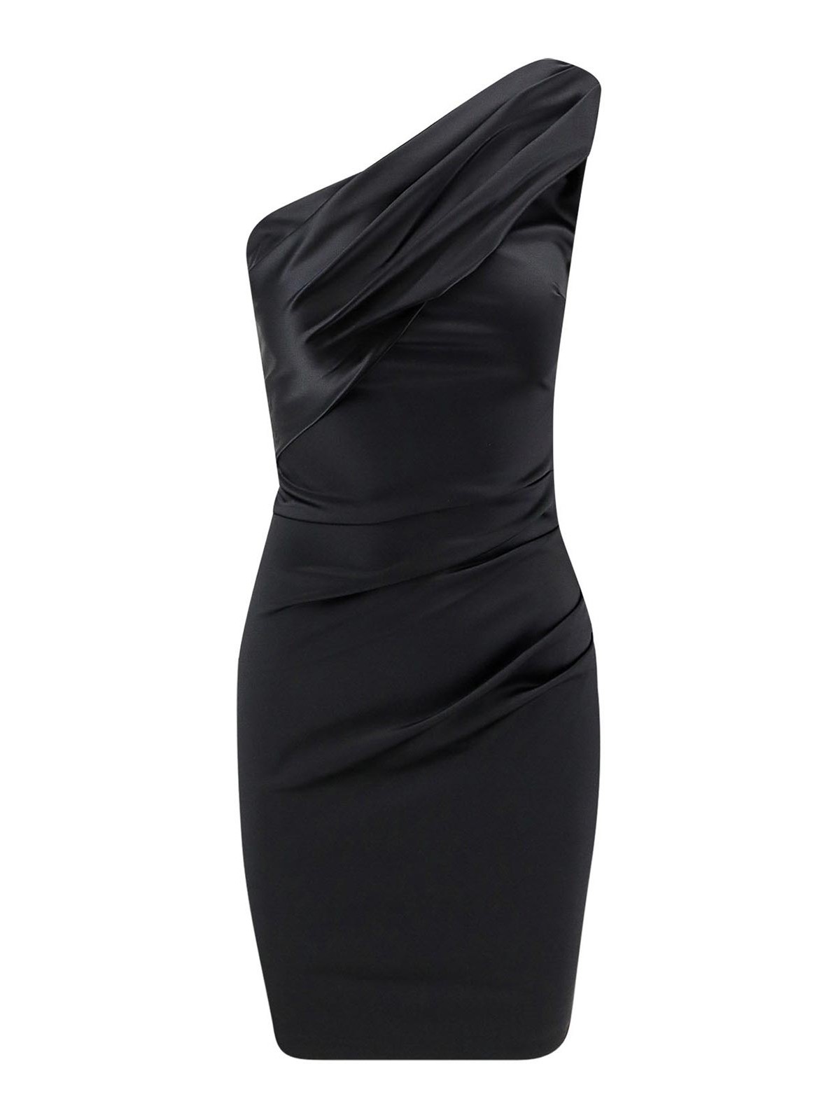ワンショルダーサイドジッパー、サイドドレープ、イタリア製、75% ポリアミド、25% エラスタン
