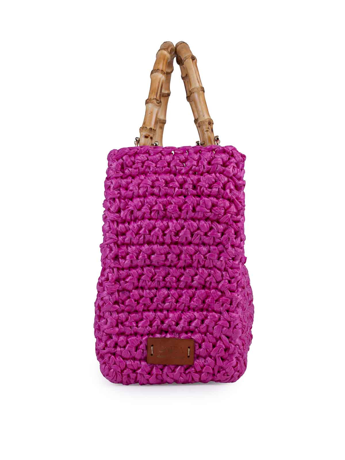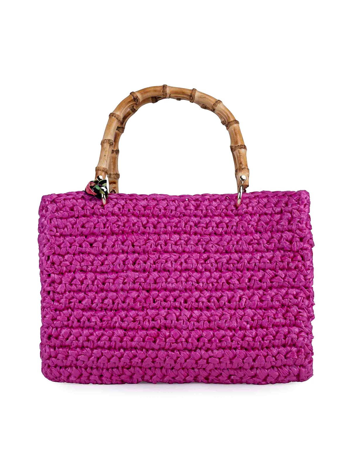 ジッパーサイドロゴプレート付きラフィアクラッチバッグ