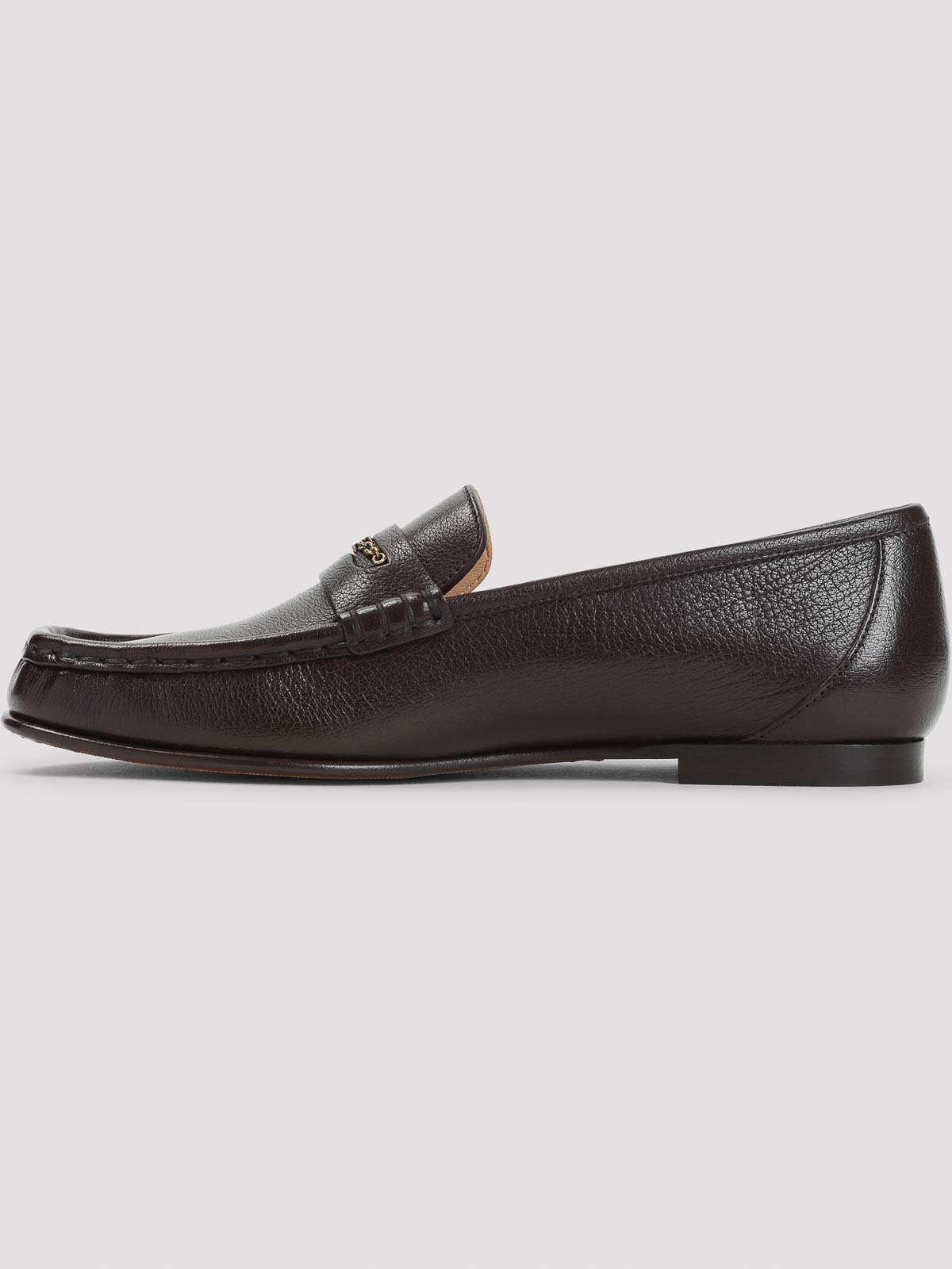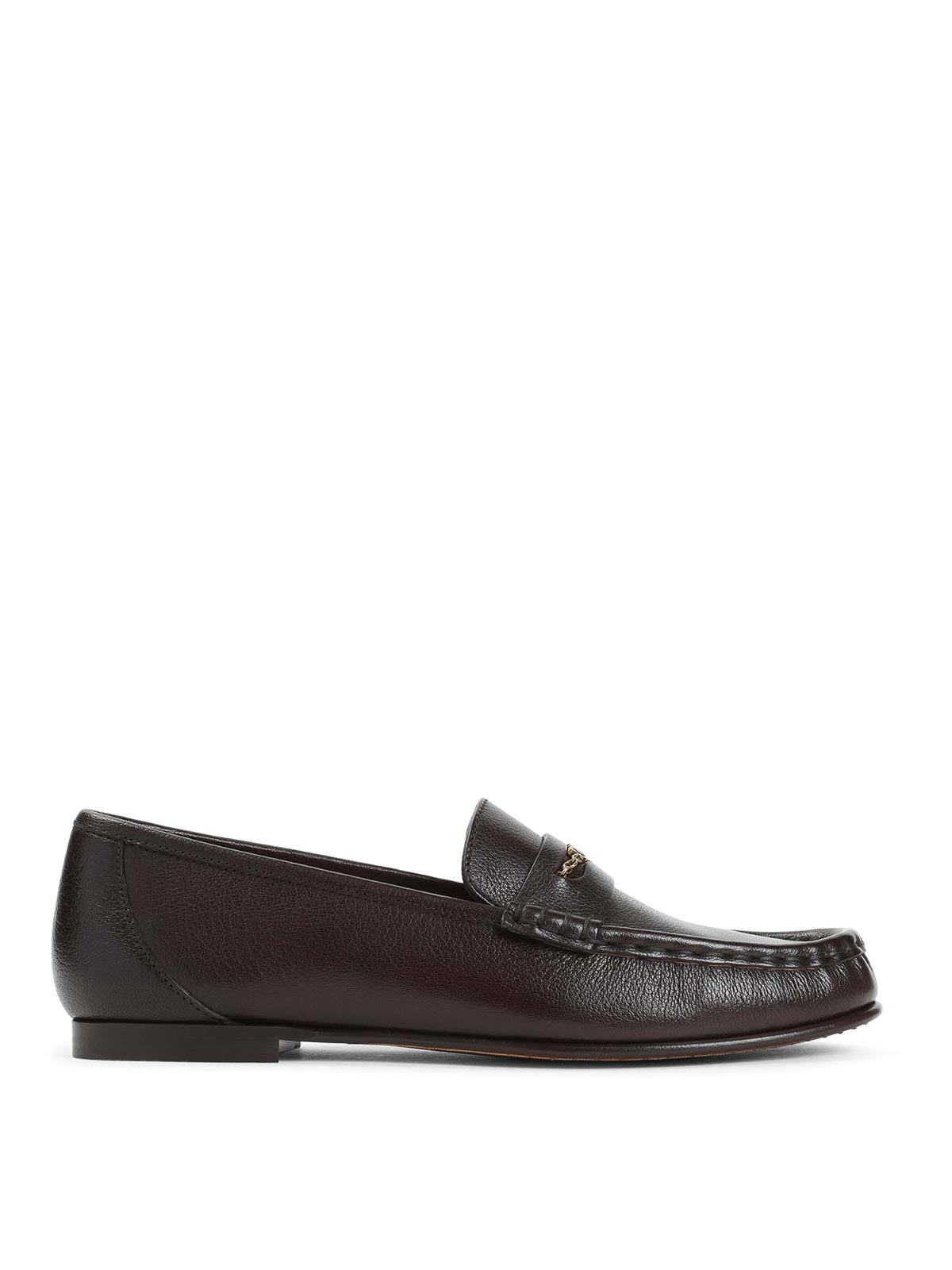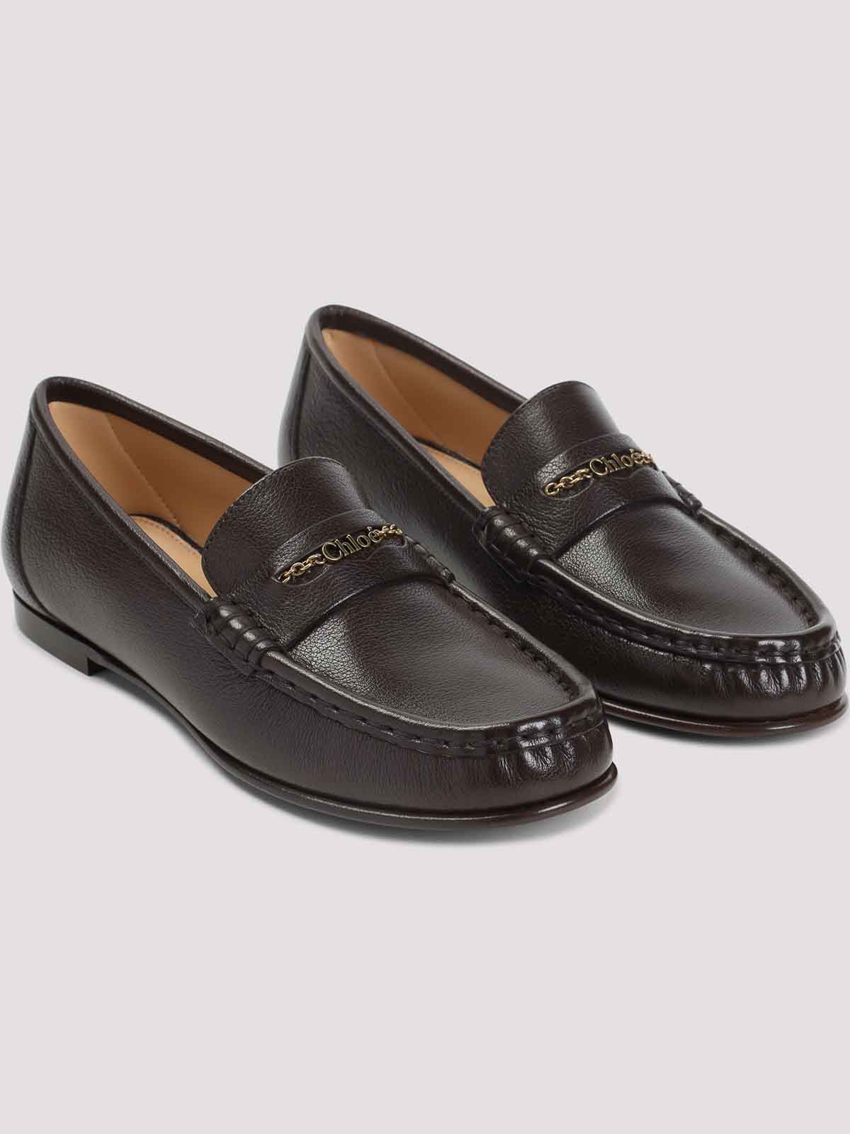 Chloe スーティーブラウンローファーピュアスーティーブラウンローファーラウンドトゥトップペニースロットトップロゴトーントーンステッチ