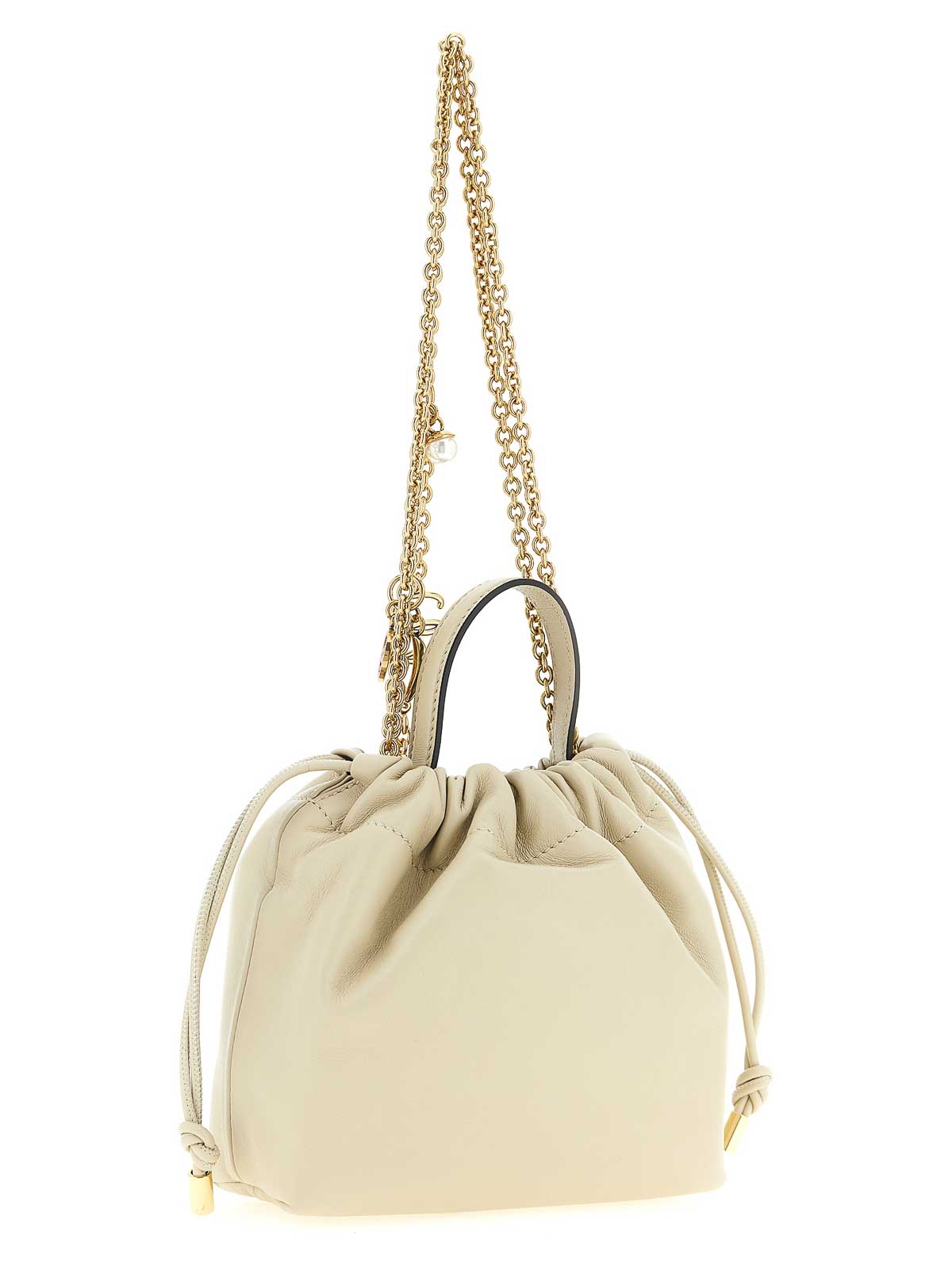 滑らかなラムナッパレザーを使用したchlo iconsのミニショルダーバッグ、前面にエンボス加工ロゴ、ドローストリングクロージャー、固定ハンドル、「ホースメダル」のディテールとチャームをあしらった「ゴールド」チェーンのショルダーストラップ。