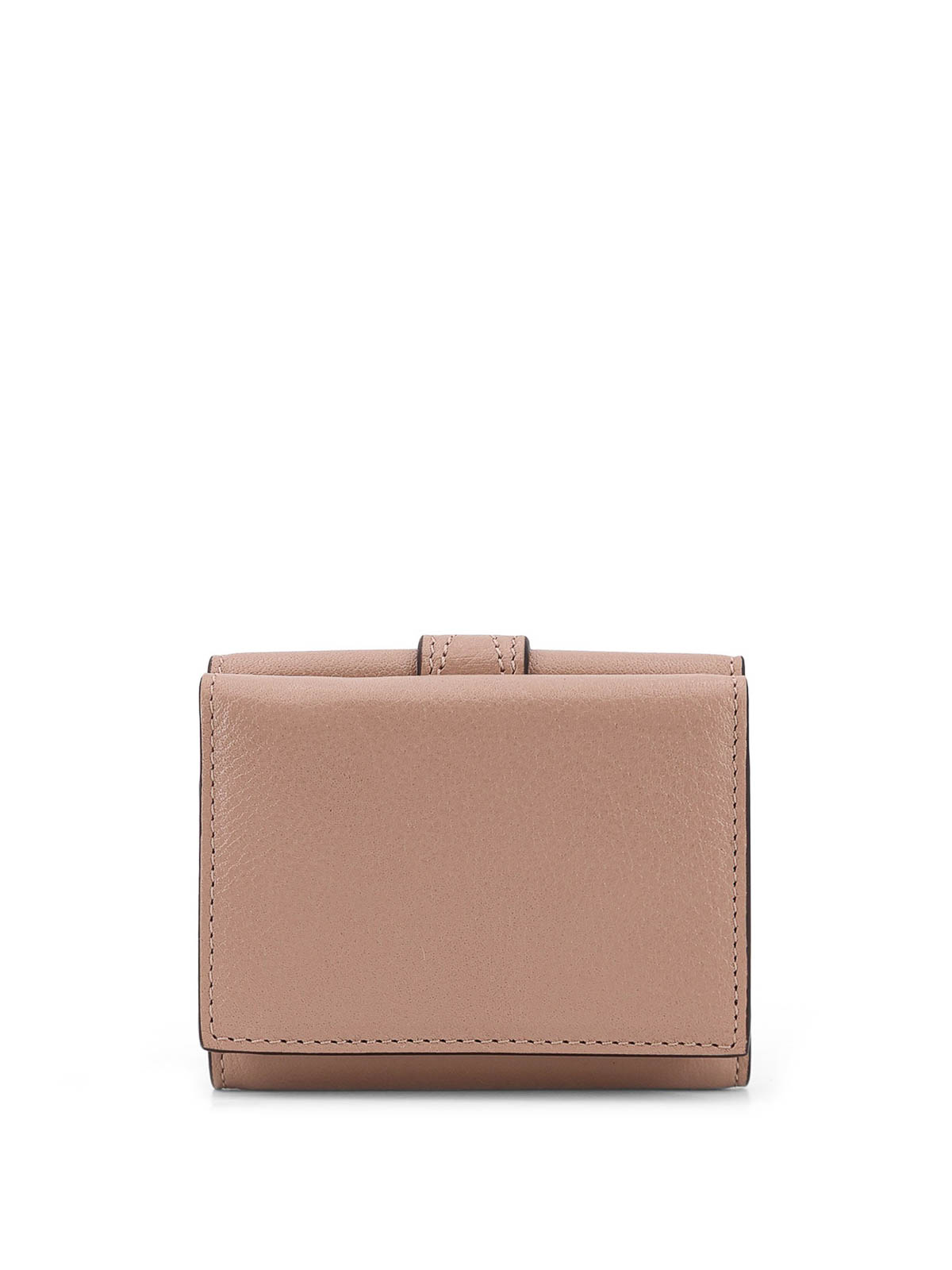 フラップとプレススタッド付きクロージャー、ロゴ刻印入りメタル南京錠、コインコンパートメント1つ、紙幣コンパートメント1つ、イタリア製、レザー、幅:9.5cm x 高さ:7.5cm x D:3cm。