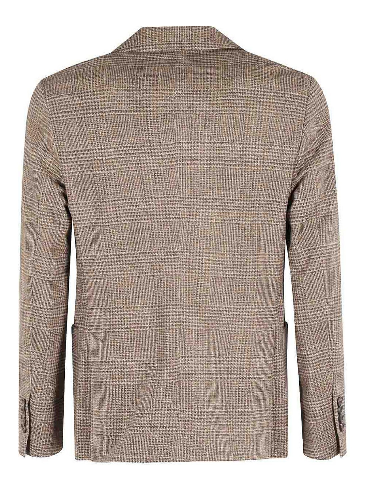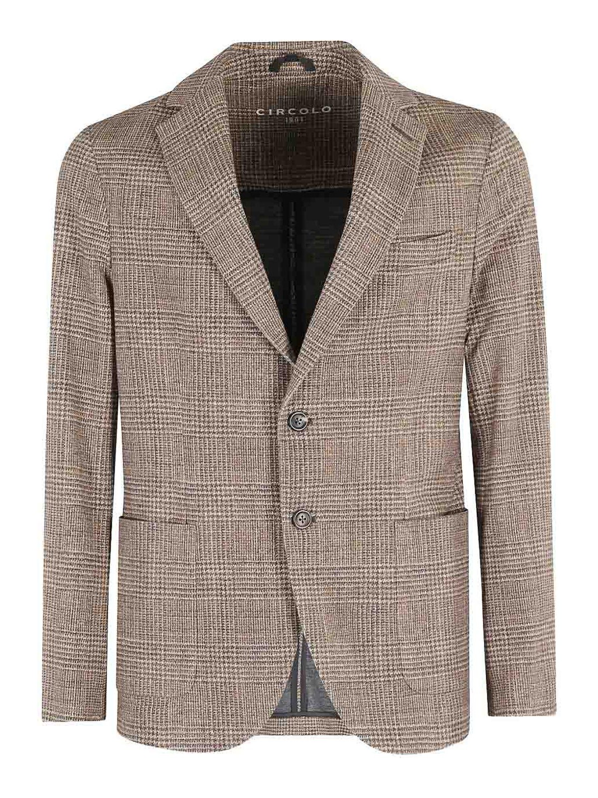 ブラウンチェック柄ツーボタンパッチポケットノッチラペルロングスリーブ