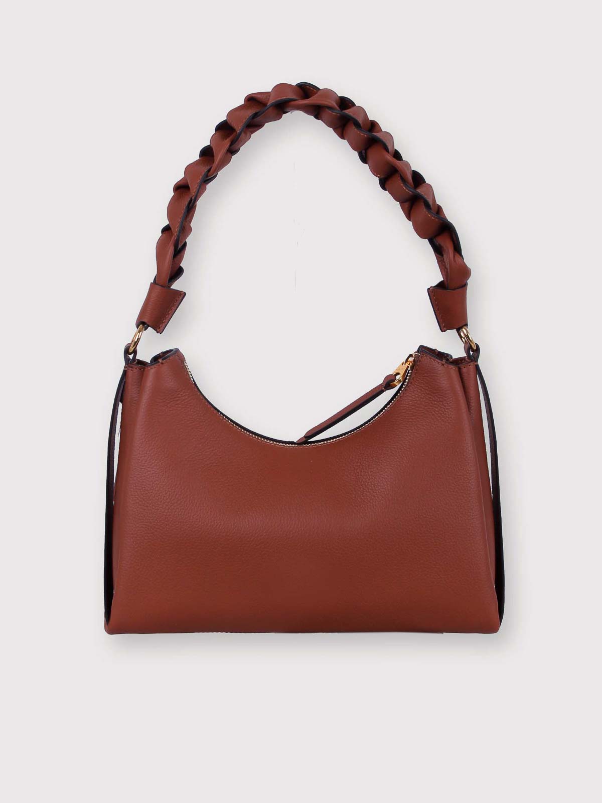 ボヘムダブルコクシネルのスモールショルダーバッグ。内ポケット3つにゴールドの織りファスナー付き。そのうちの1つはファスナー付き
