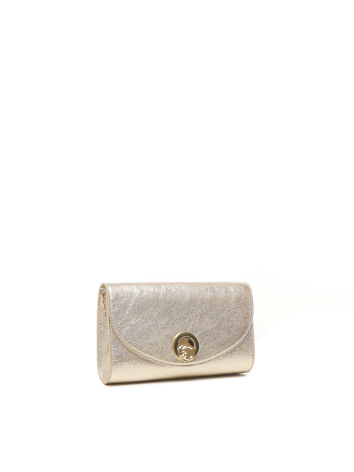 スムースレザー、レザー、チェーンショルダーストラップ、内側にファスナーポケット、ショルダーバッグとして持ち運び可能、内側は布製、寸法:26 x 13 x 4 cm、色:ゴールド
