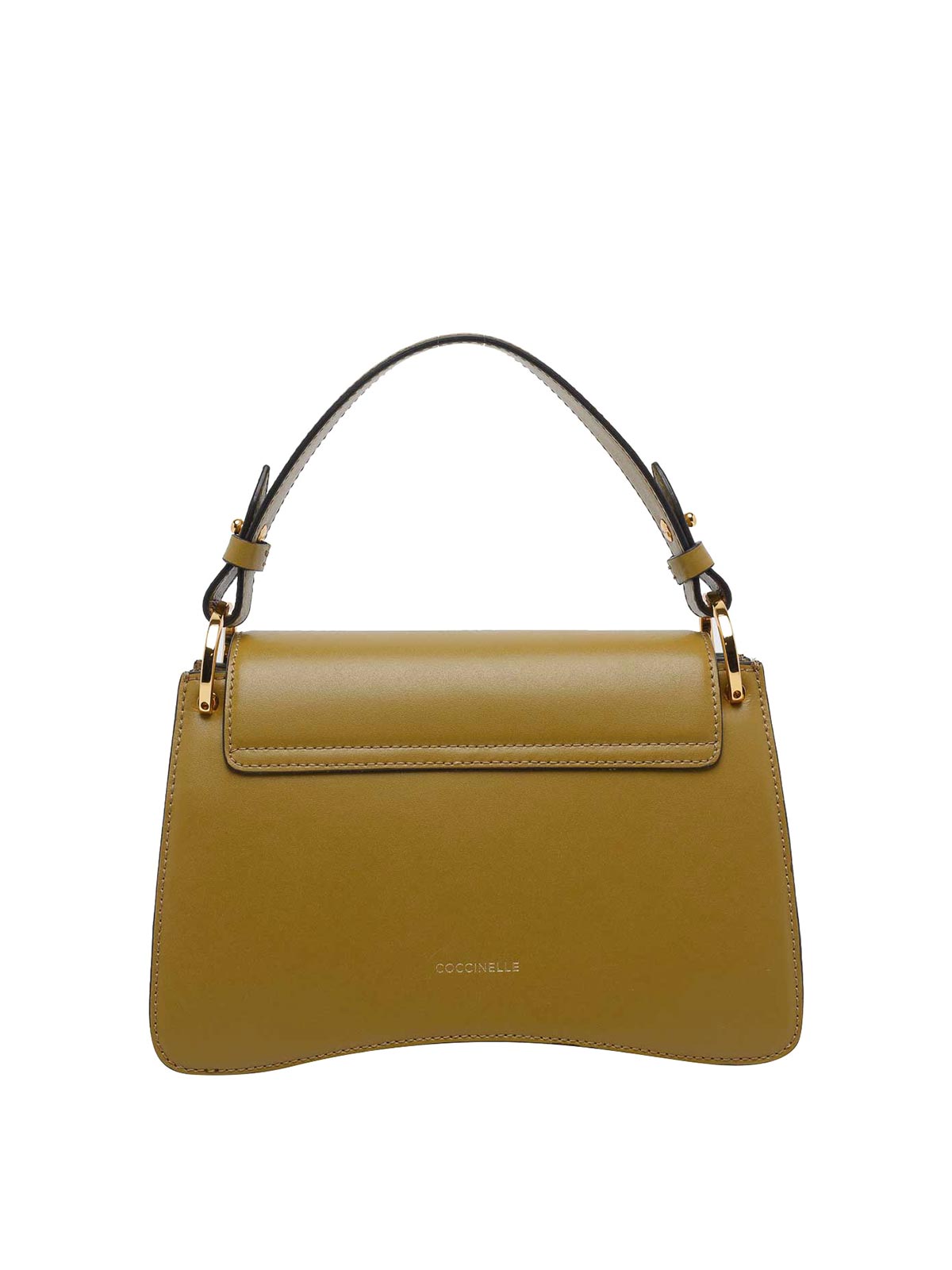Coccinelle グリーンスモールC-MEハンドバッグ、マグネットクロージャー、内側にファスナー付きポケット、取り外し可能で調整可能なストラップ、正面ロゴ、レザーモデル