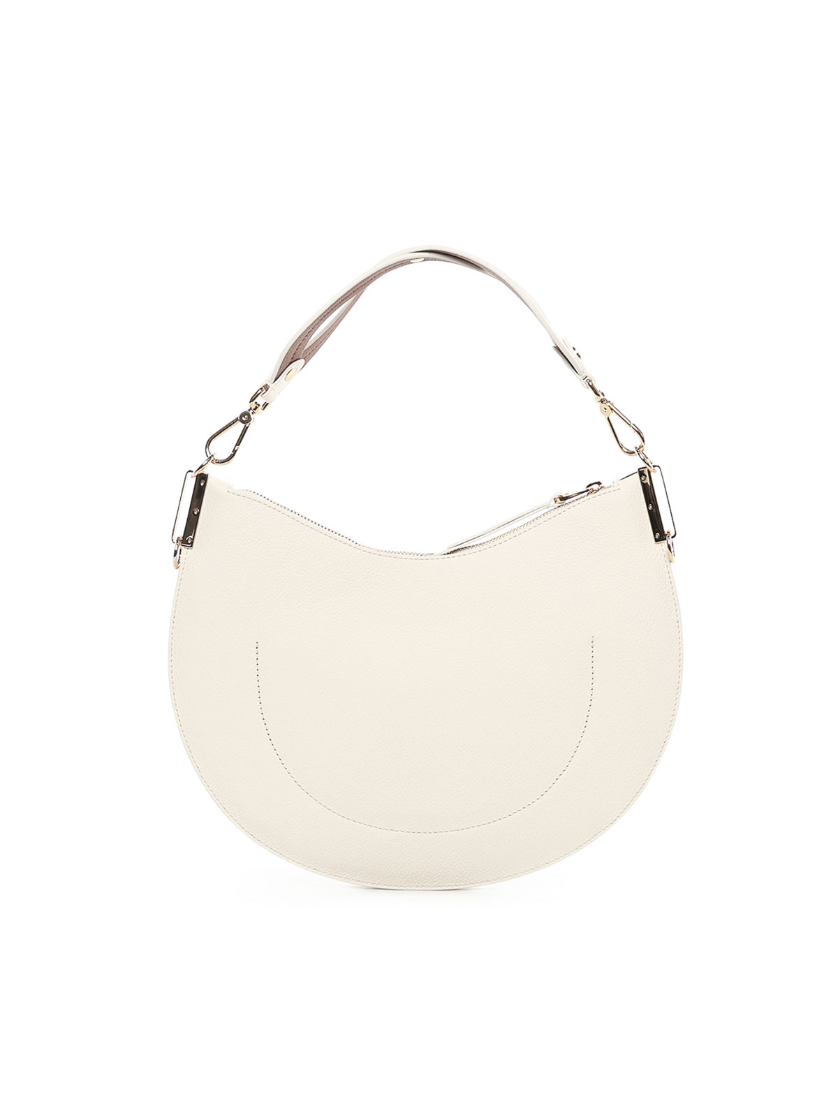 ダブルレザー製、トップジッパー、ショルダーとクロスボディの持ち運びに便利、調節・取り外し可能なレザーショルダーストラップ、寸法:33 x 23 x 7 cm、デザイナーカラー:パール、コニャック