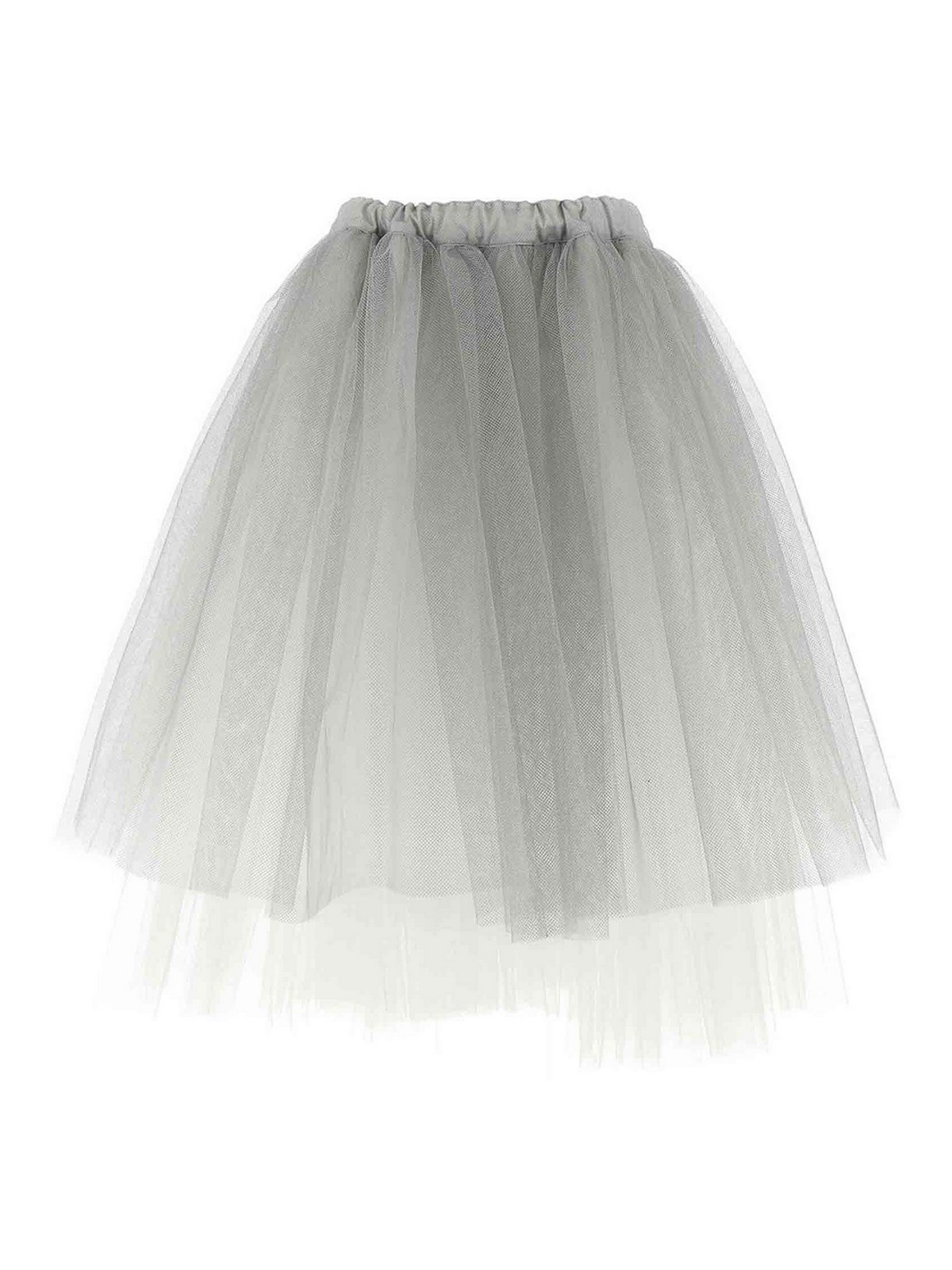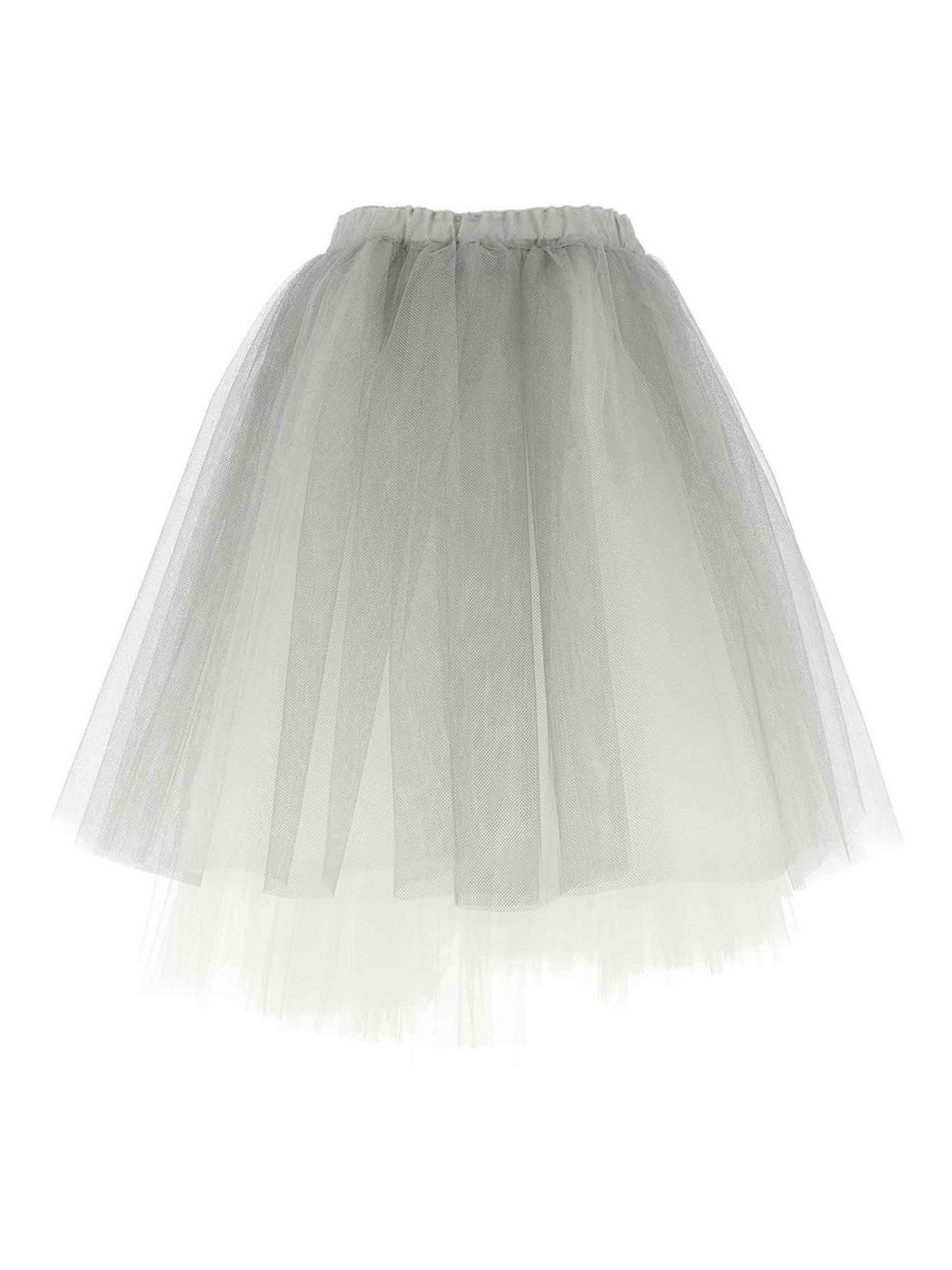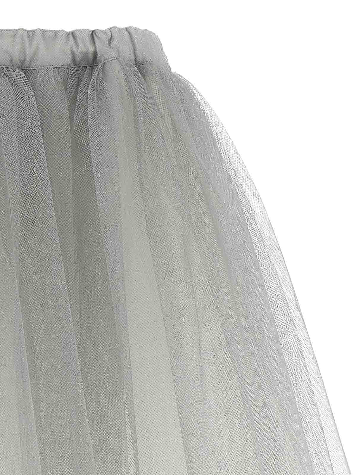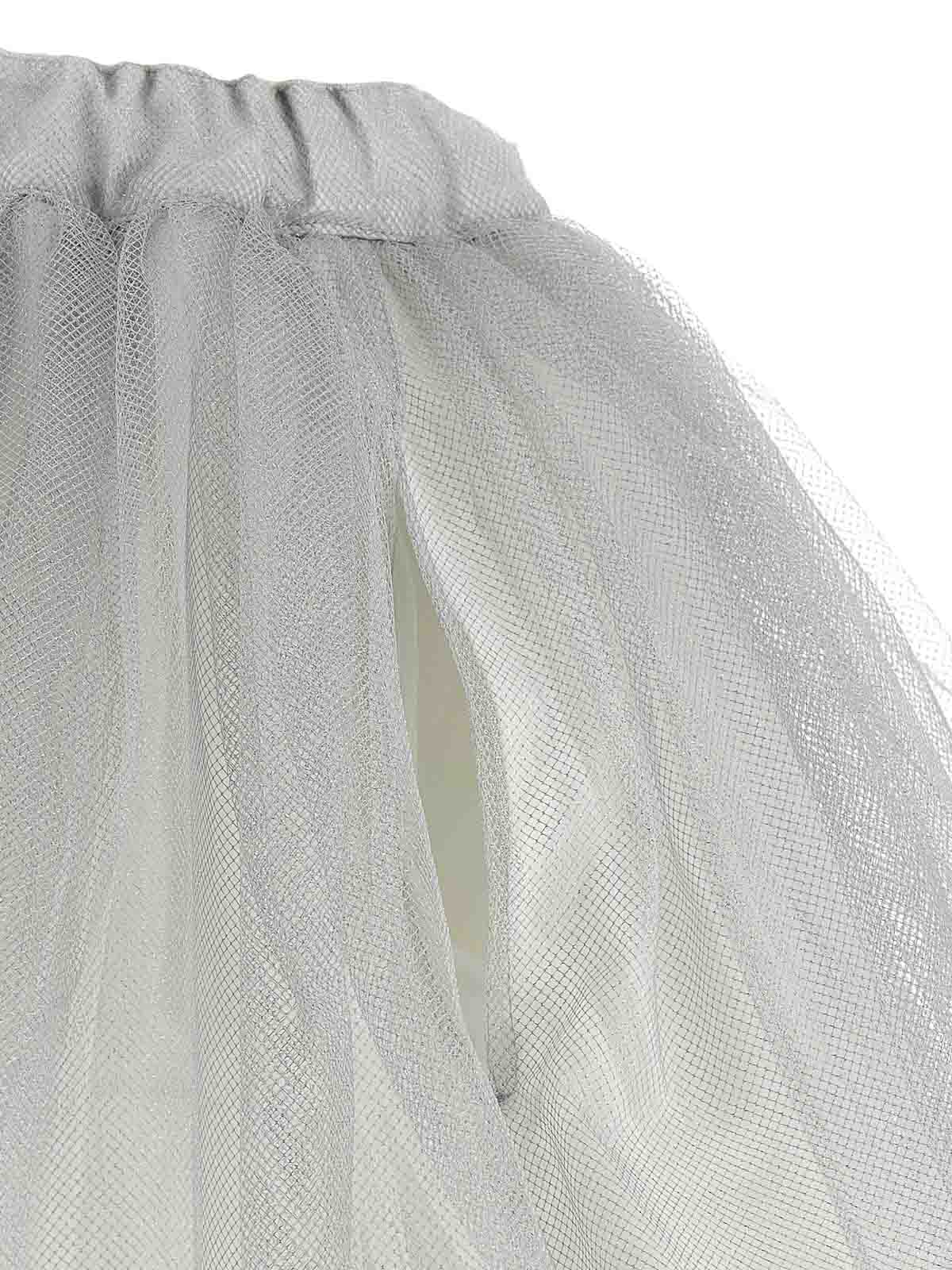 メタラスチュールのマルチレイヤースカート。ウエストがカールしたワイドモデル。伸縮性のある非対称サイドポケット付き。