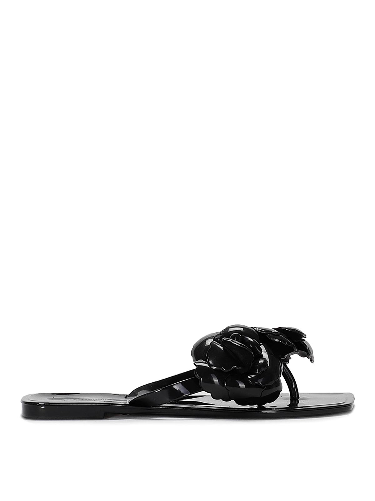 前面に大きな花が付いた柔らかく透明な半透明のスリッポンサンダル