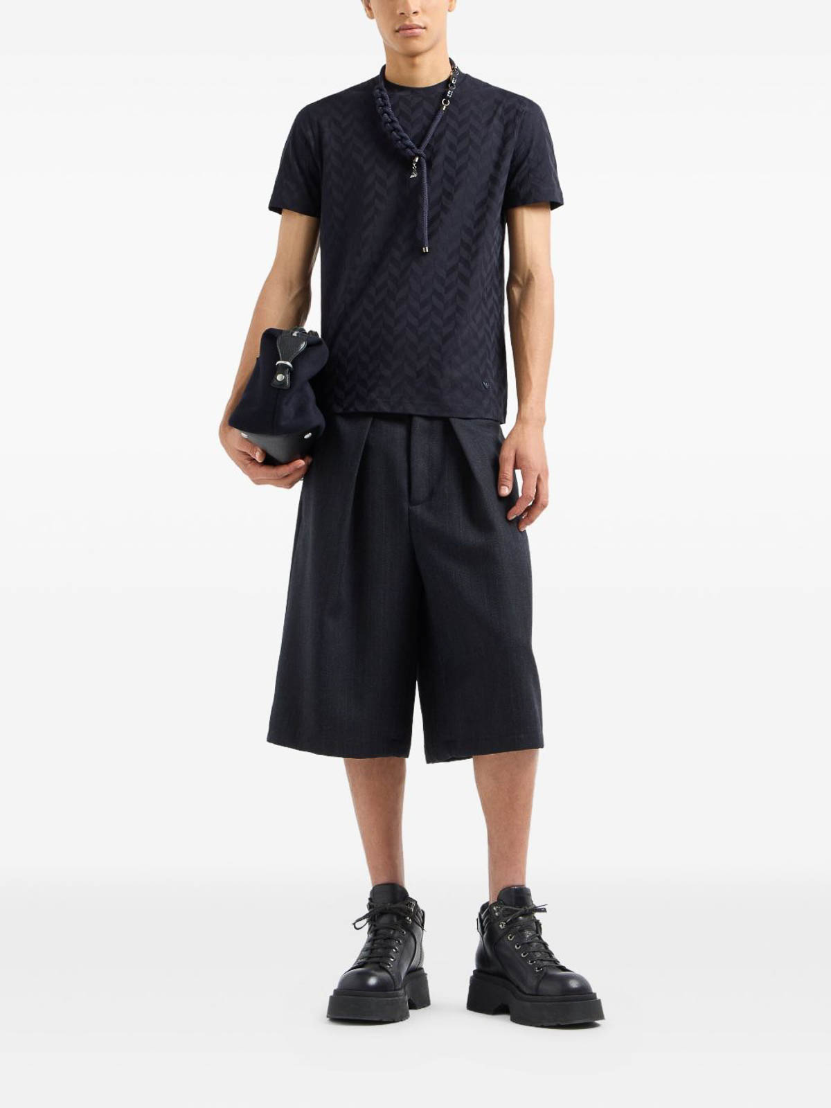 ダークブルーヘリンボーン柄半袖ラウンドネックコットン