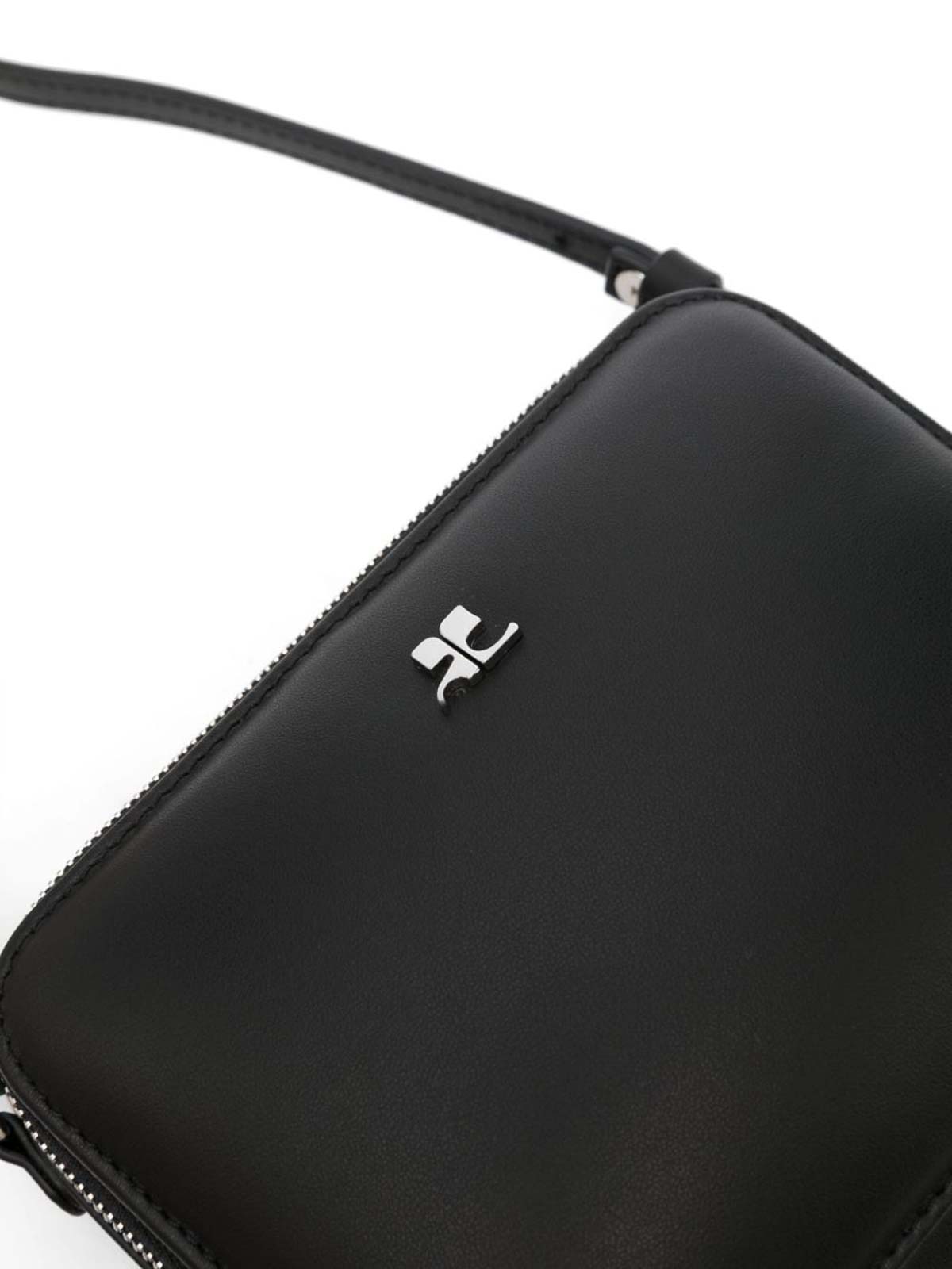 スモールクラウドショルダーバッグブラックシルバートーンロゴプレートトップジッパーシングルフラットトップスリップポケットオールラウンドジッパーとメインコンパートメント