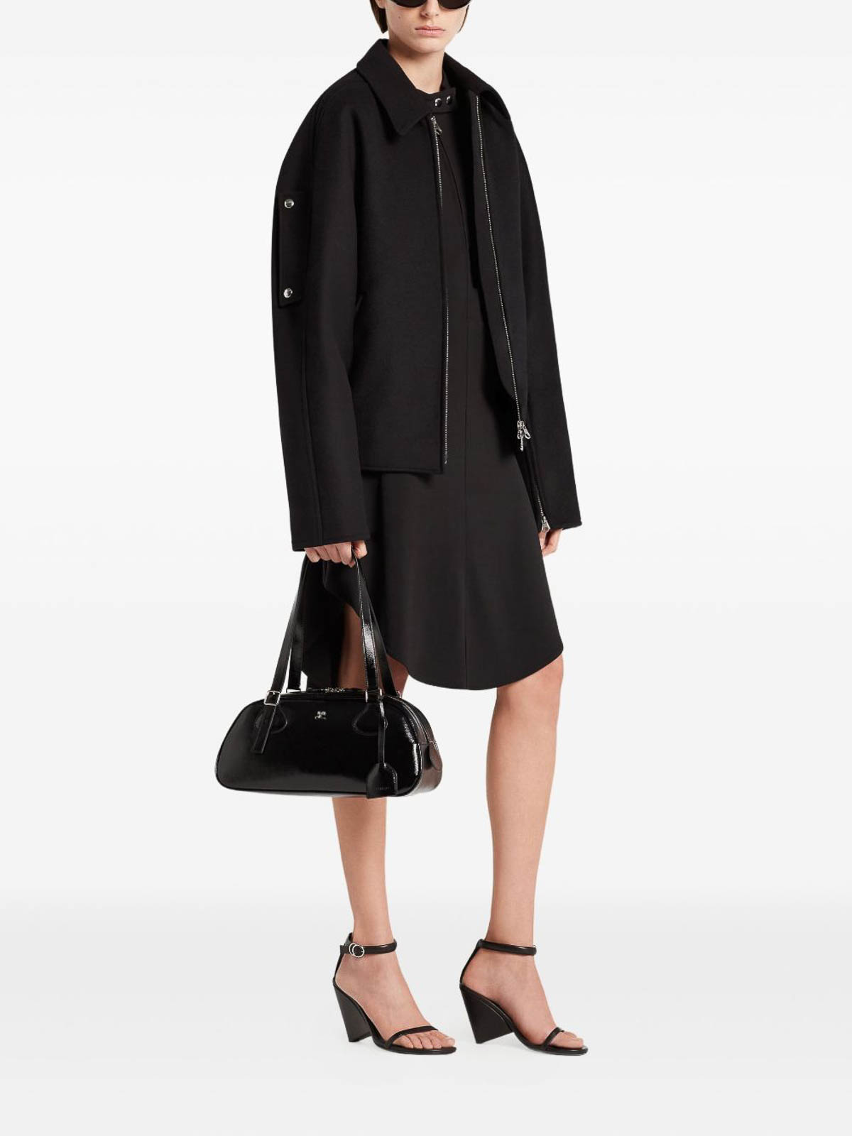 前面にACロゴとキーリング、金属製のジッパークロージャー、短いハンドル、取り外し可能で調節可能なショルダーストラップ、内ポケット