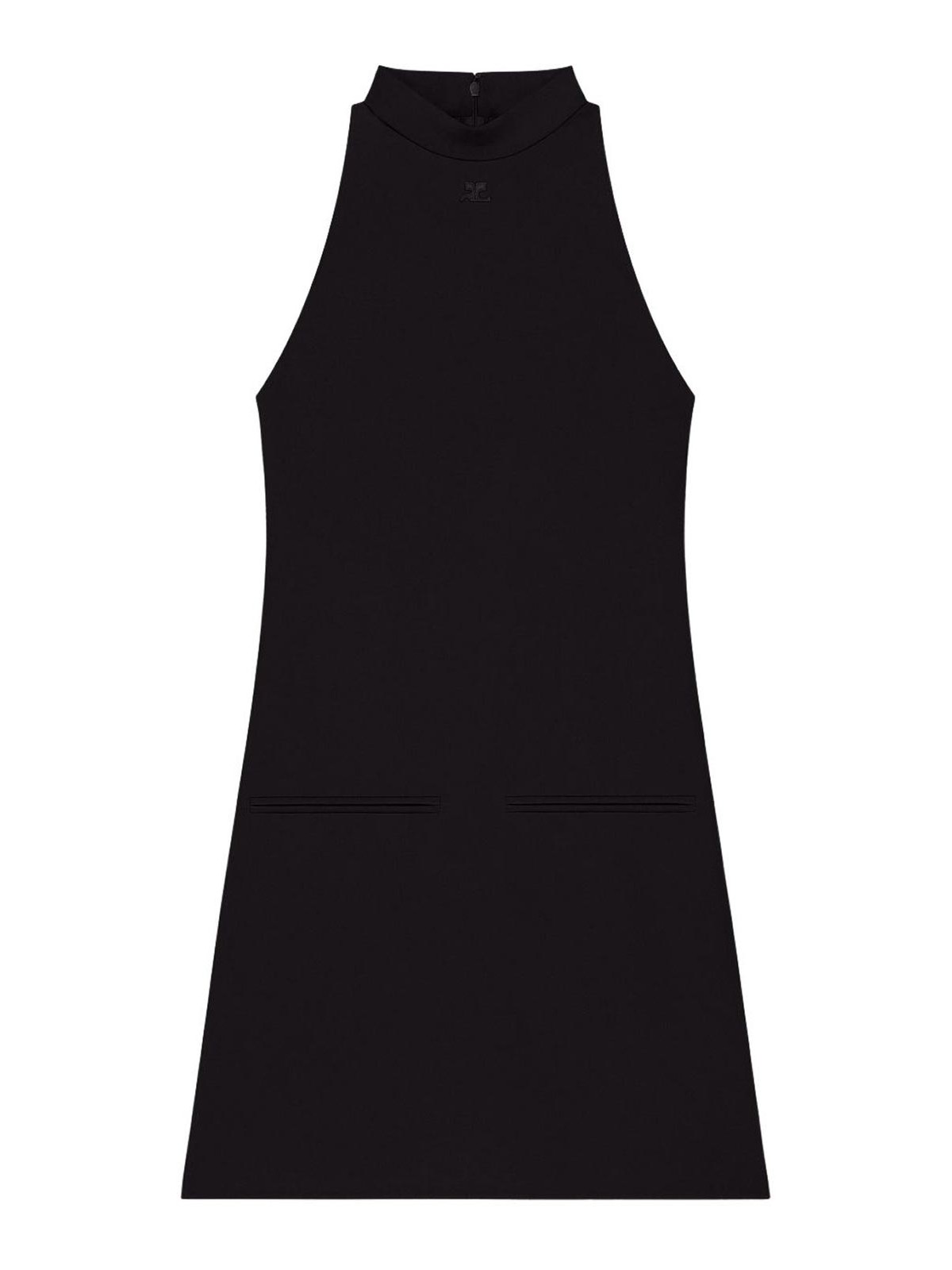 ノースリーブ、Aラインのモックネックドレス、フロントにウェルトポケット2つ、ネックラインの下にACロゴの刺繍