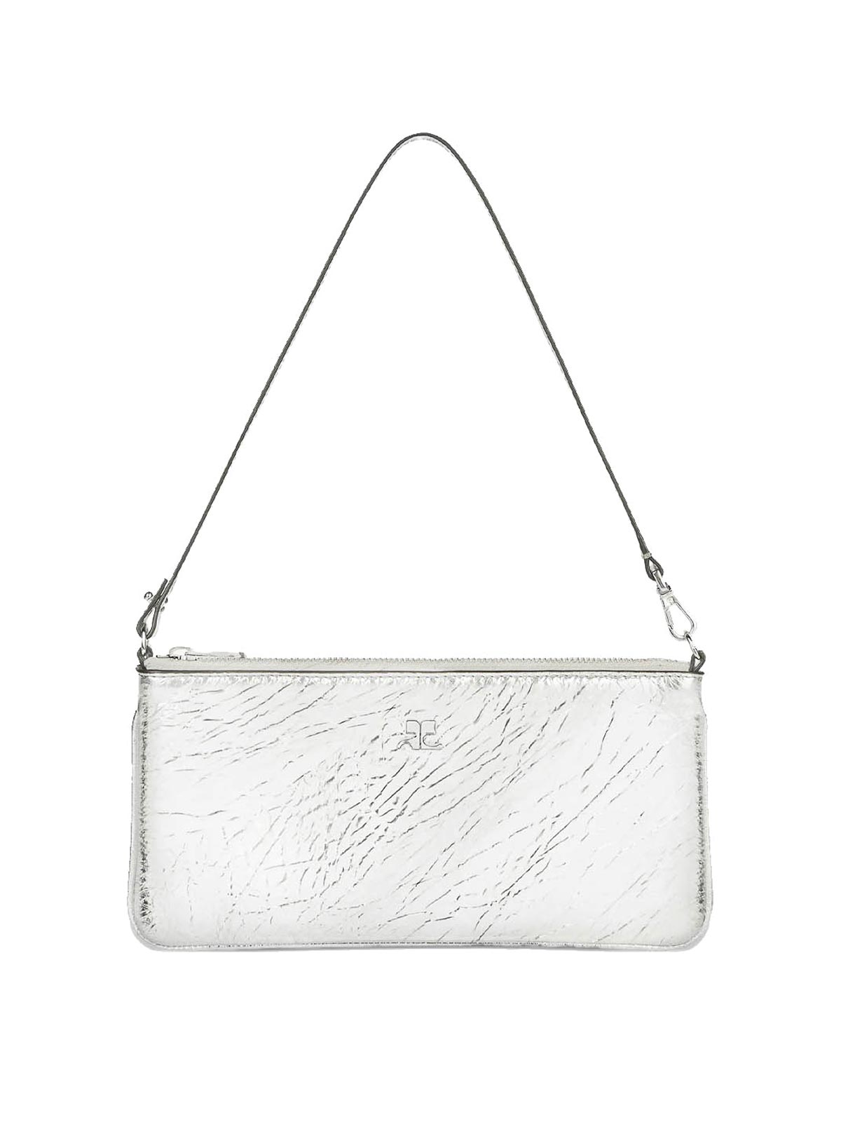 ナップラックレザー製、取り外し可能なトップハンドル、ファスナー開閉、寸法:24 x 12 x 2 cm、イタリア製、デザイナーカラー:ミラー