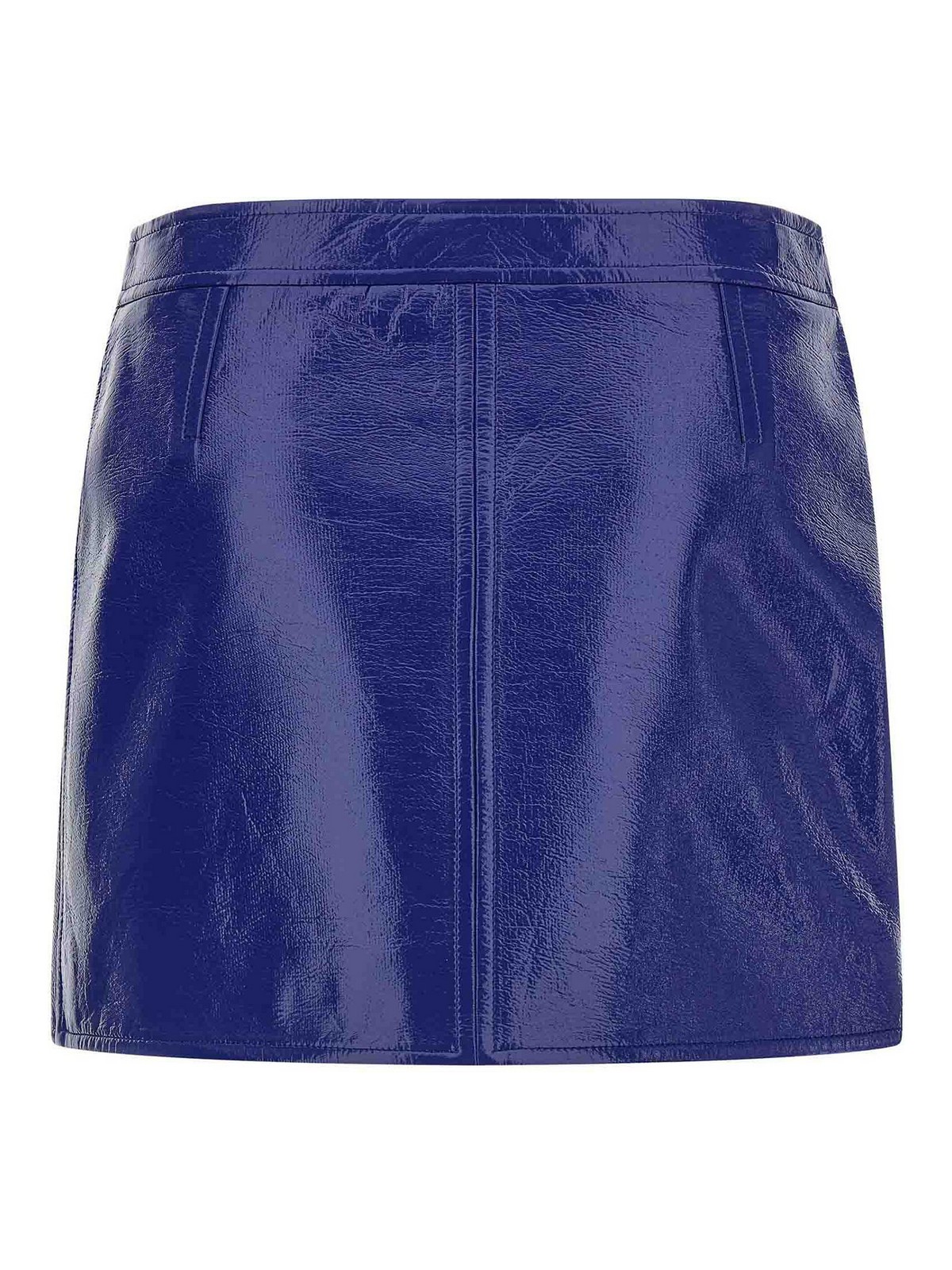 ビニール「リエディションビニール」ミニスカート、裏地、コントラスト「AC」ロゴパッチ、フロントジッパーとスナップボタンクロージャー。