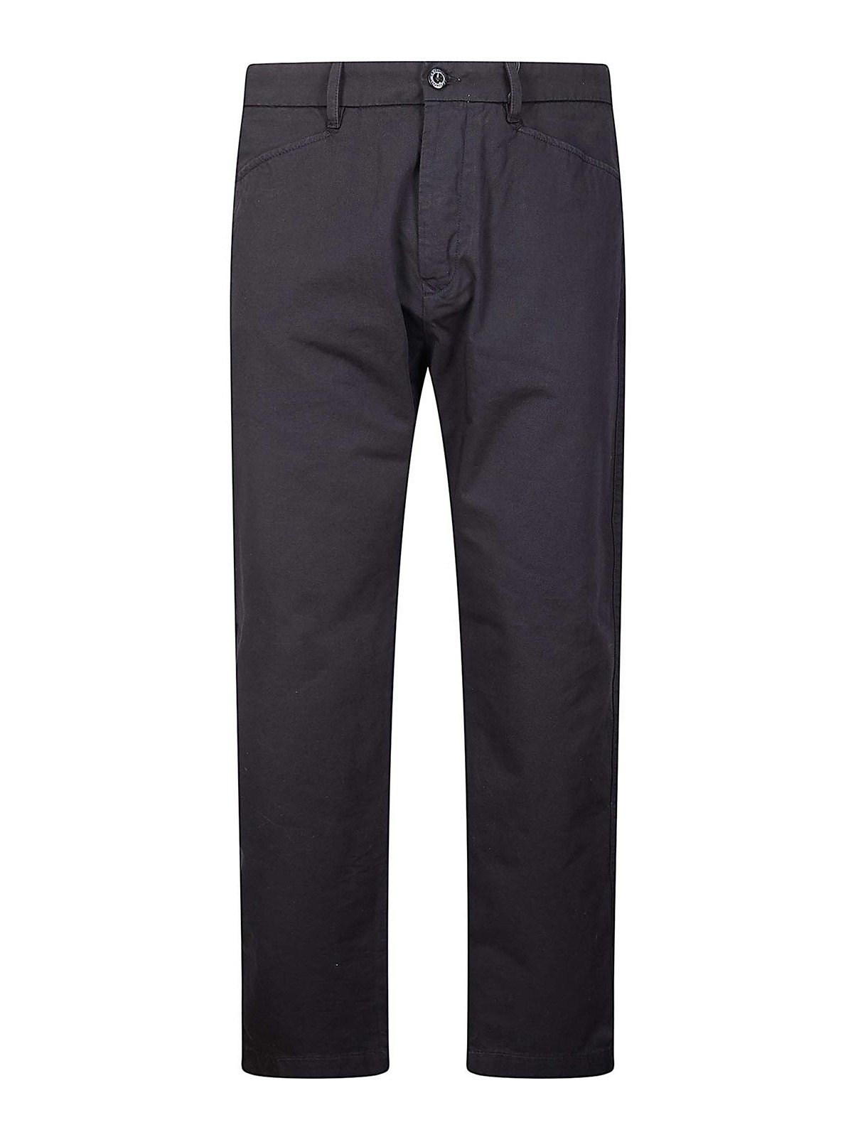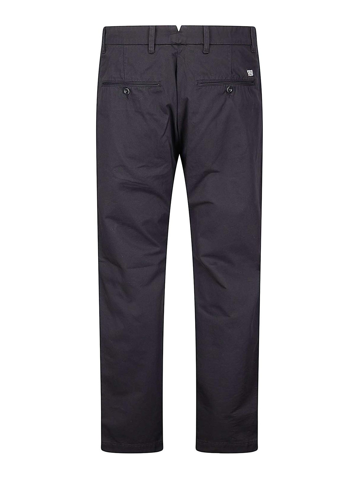 コットンギャバジン製のチノパンツ。ボタン留め、ベルトループ、サイドポケット、フロントコインポケットが特徴です。後ろにボタンとラベルが貼られたウェルトポケットが、衣類を完璧に仕上げています。ガーメントダイド。レギュラーフィット。