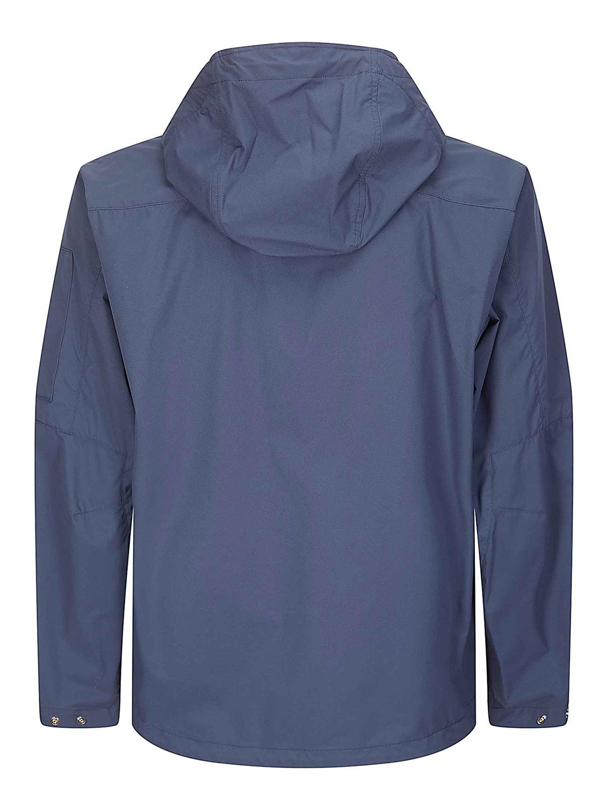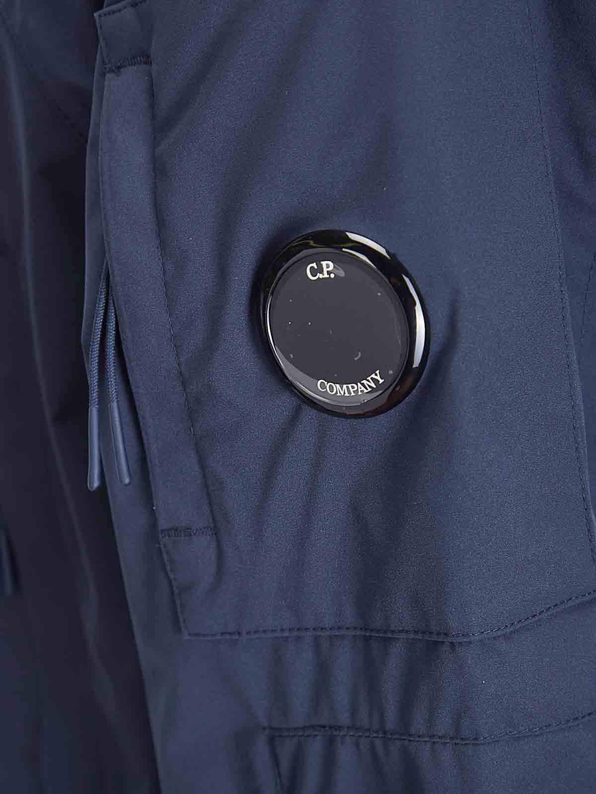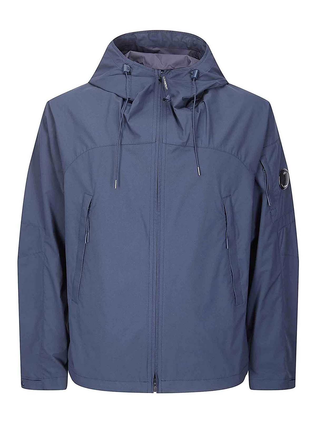 シャツの重さと快適さをアウターウェアの保護性と兼ね備えたメカニカルストレッチポリエステルであるプロテック製の軽量フード付きジャケット。アイコニックなC.P. lens.社が特徴で、フルダブルスライダーのジッパーとサイドジッパーポケットが付いています。滴り落ち防止加工。レギュラーフィット。