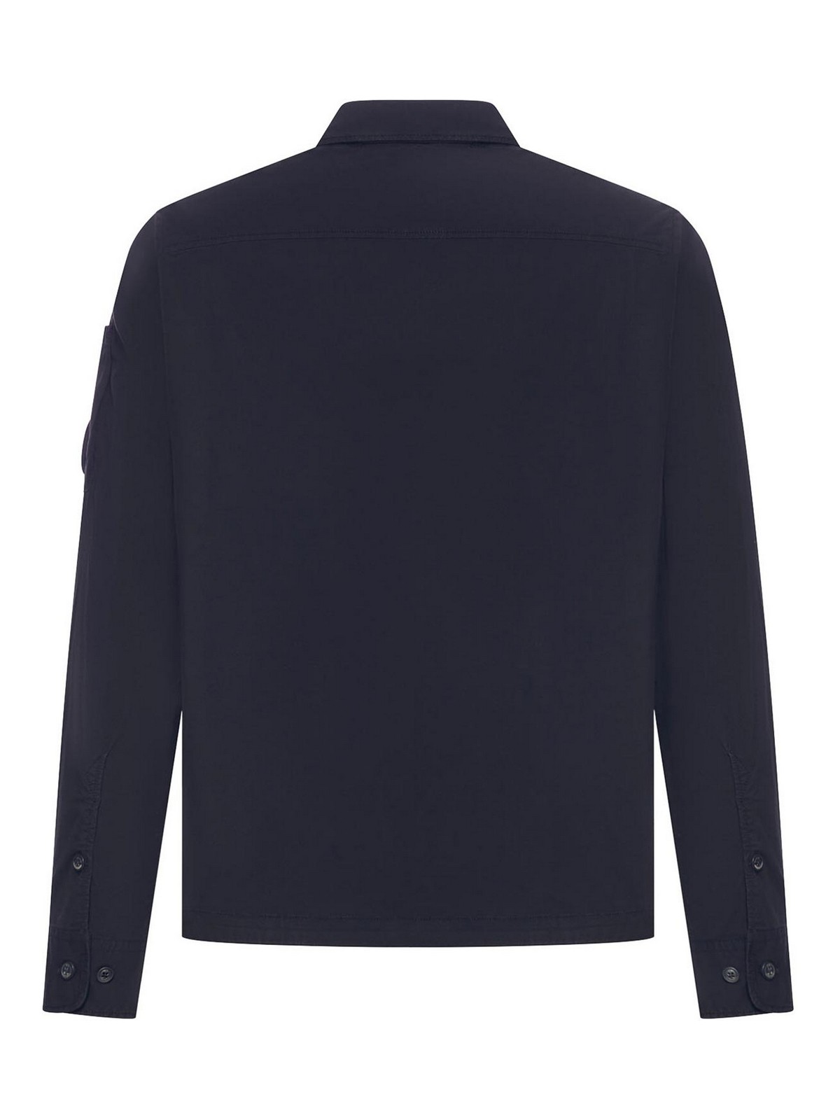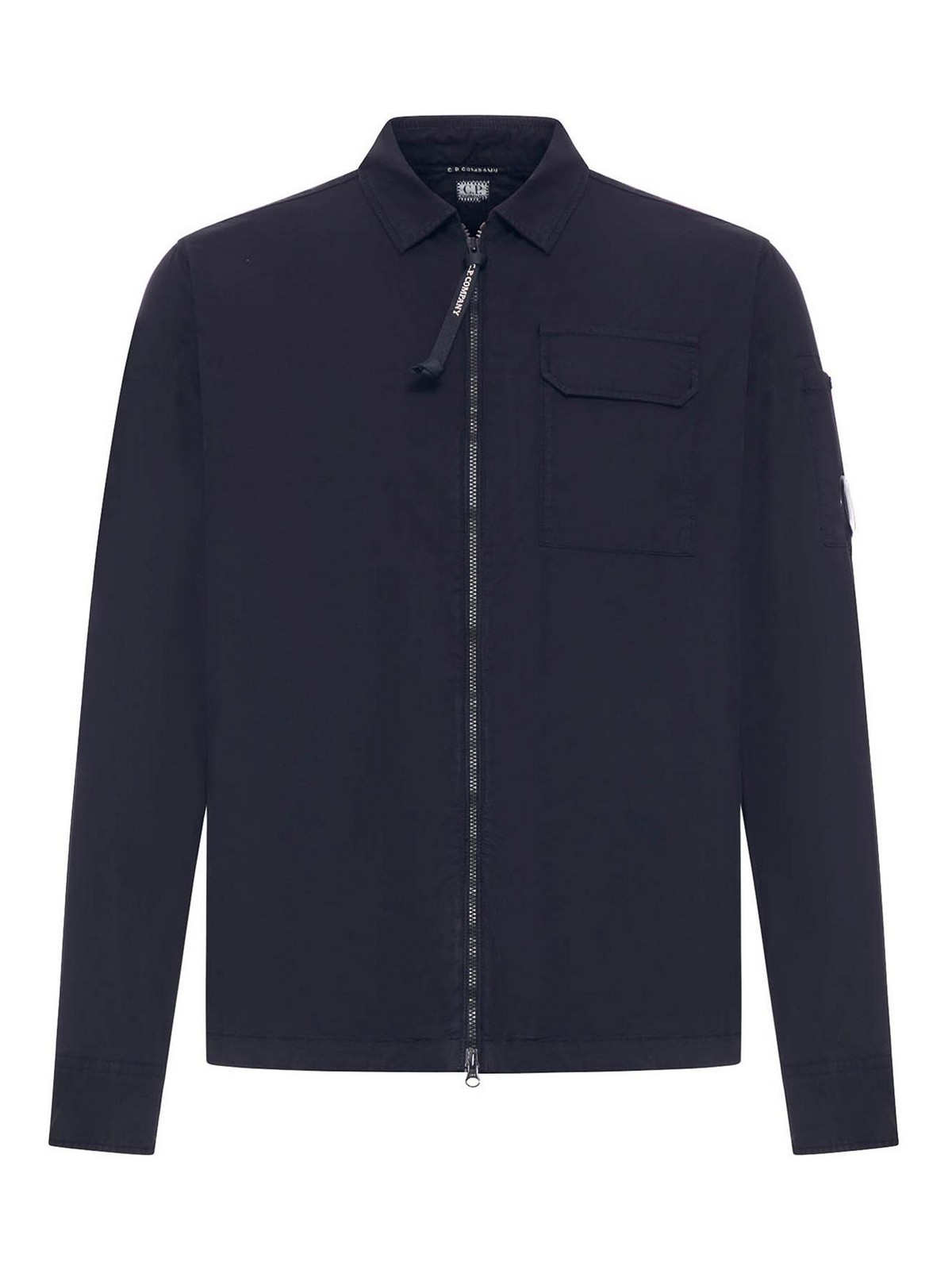 クラシックカラー、2ウェイジッパー付きフルジッパー、フラップとスナップボタン付きの胸ポケット1つ、袖にC.P. の象徴的なレンズが付いたポケット、調節可能なボタン付きカフス、グローバルオーガニックテキスタイルスタンダード(gots)認定のオーガニックコットンギャバジン製、レギュラーフィット、微妙な色調と深みのある色調に染めた服、色:皆既日食
