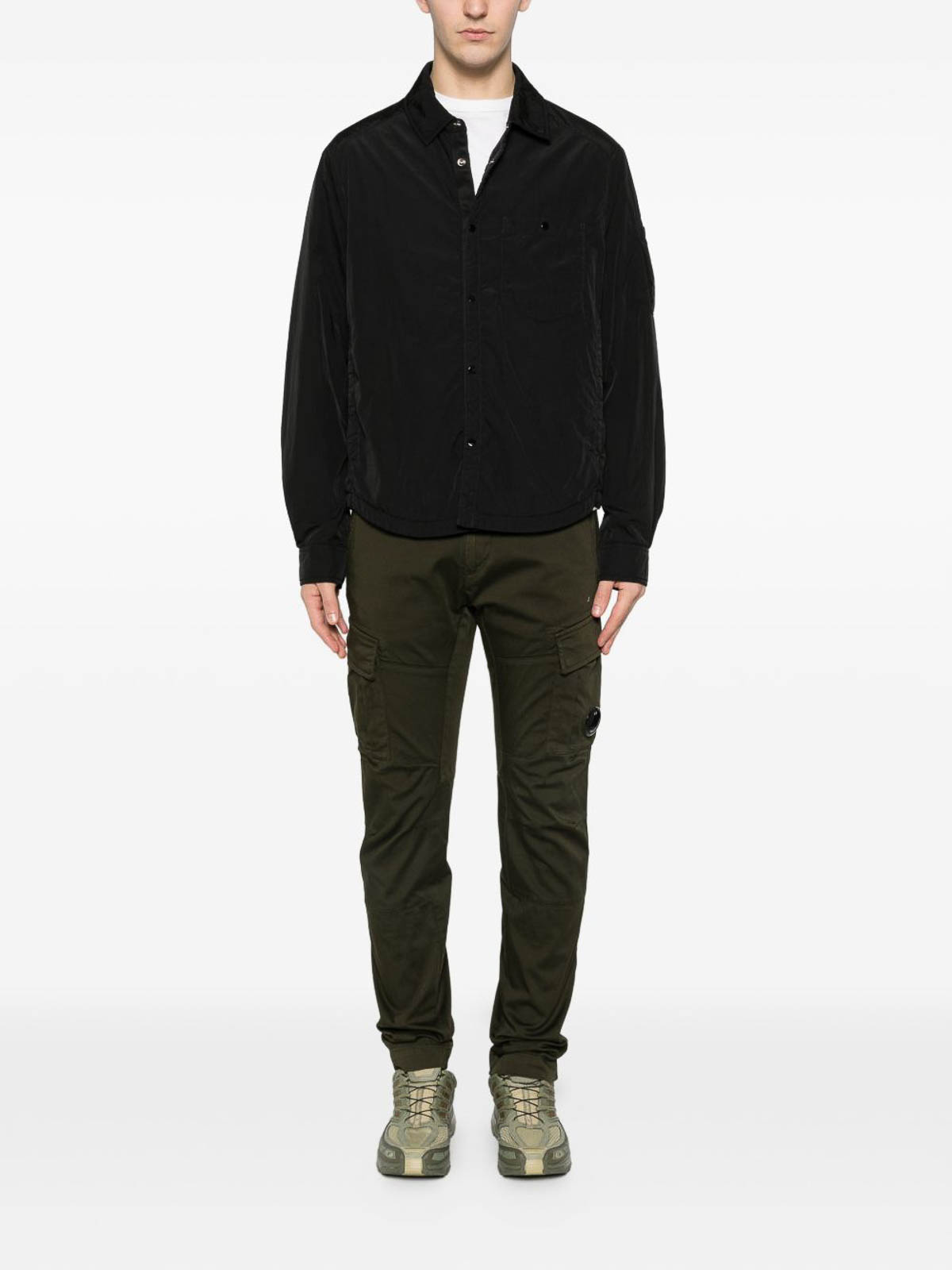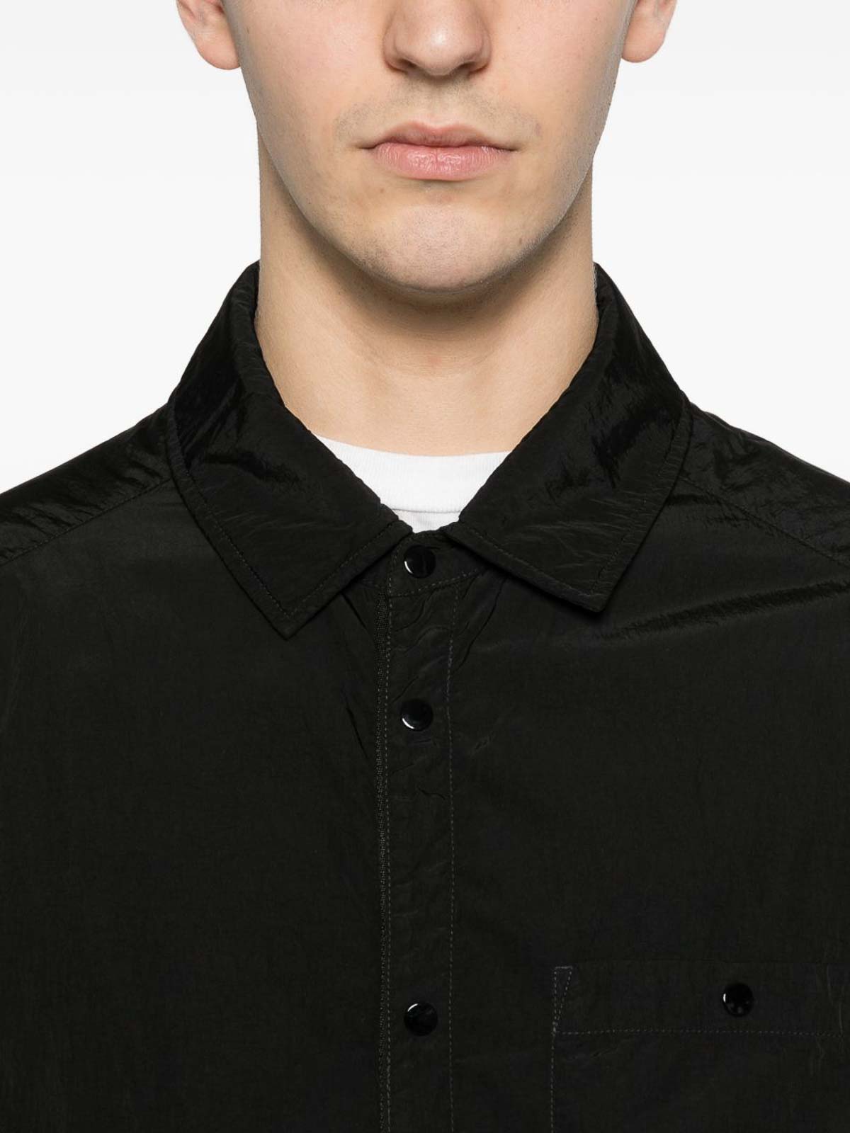 袖ボタン留め、長袖、ボタン付き袖口、ボタン付き袖口に黒い胸ポケットのロゴディテール。C.P. 社は、洗濯する前に取り外し可能なアクセサリーをすべて取り外すことを推奨しています。