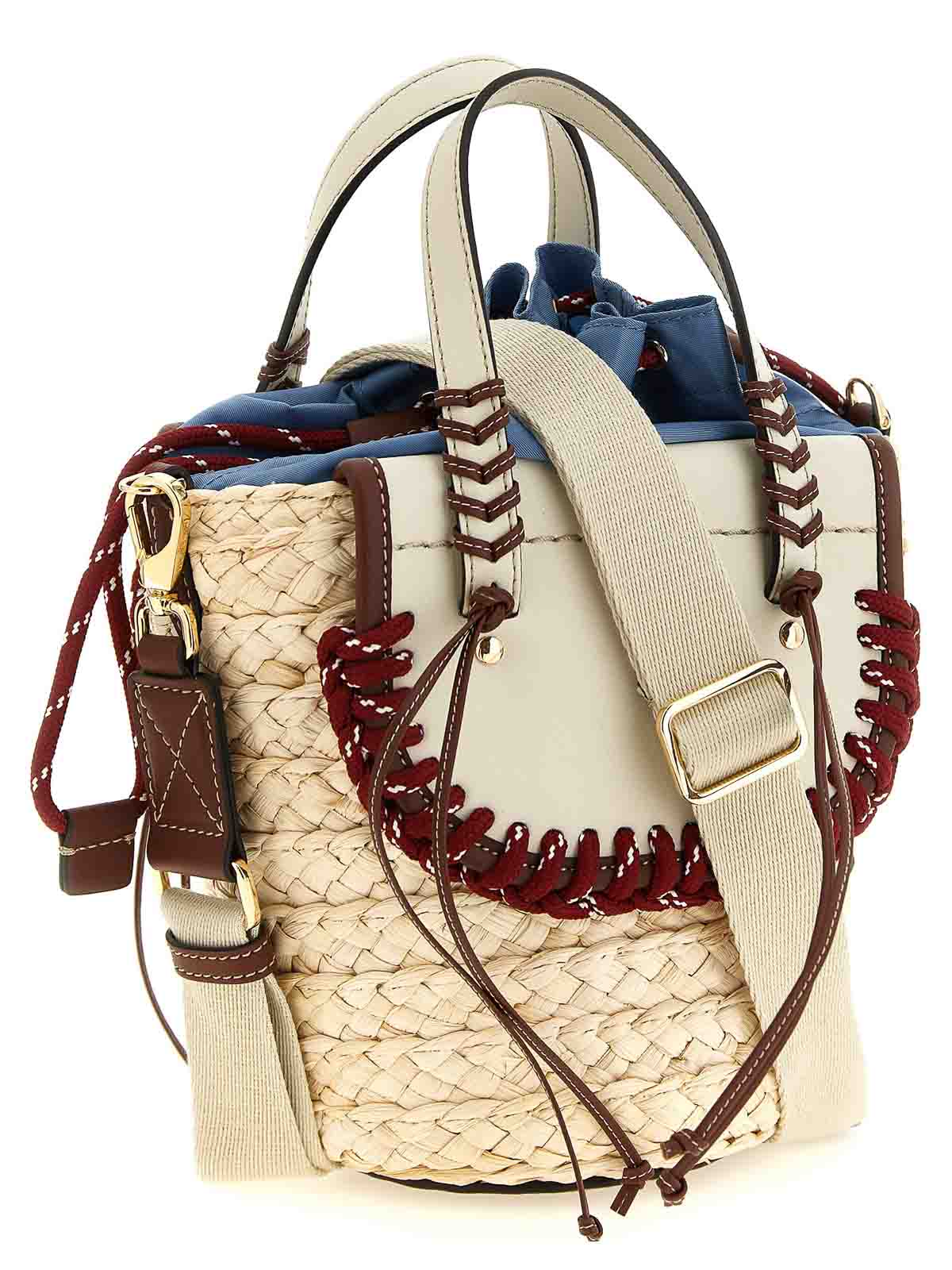 Cuba lab x san pa「habanera trek」ハンドバッグは、ラフィア織りとスムースレザー製で、屋外用のテクニカルドローストリングで装飾されたフラップとダブル固定ハンドル、ドローストリングクロージャーのコントラストの効いたナイロン生地のポーチの裏地、調節可能で取り外し可能なショルダーストラップ。イタリアでsanpatrignanoが愛情を込めて製造しています。手作りの製品で、どんな欠陥もユニークさの特徴とみなされます。