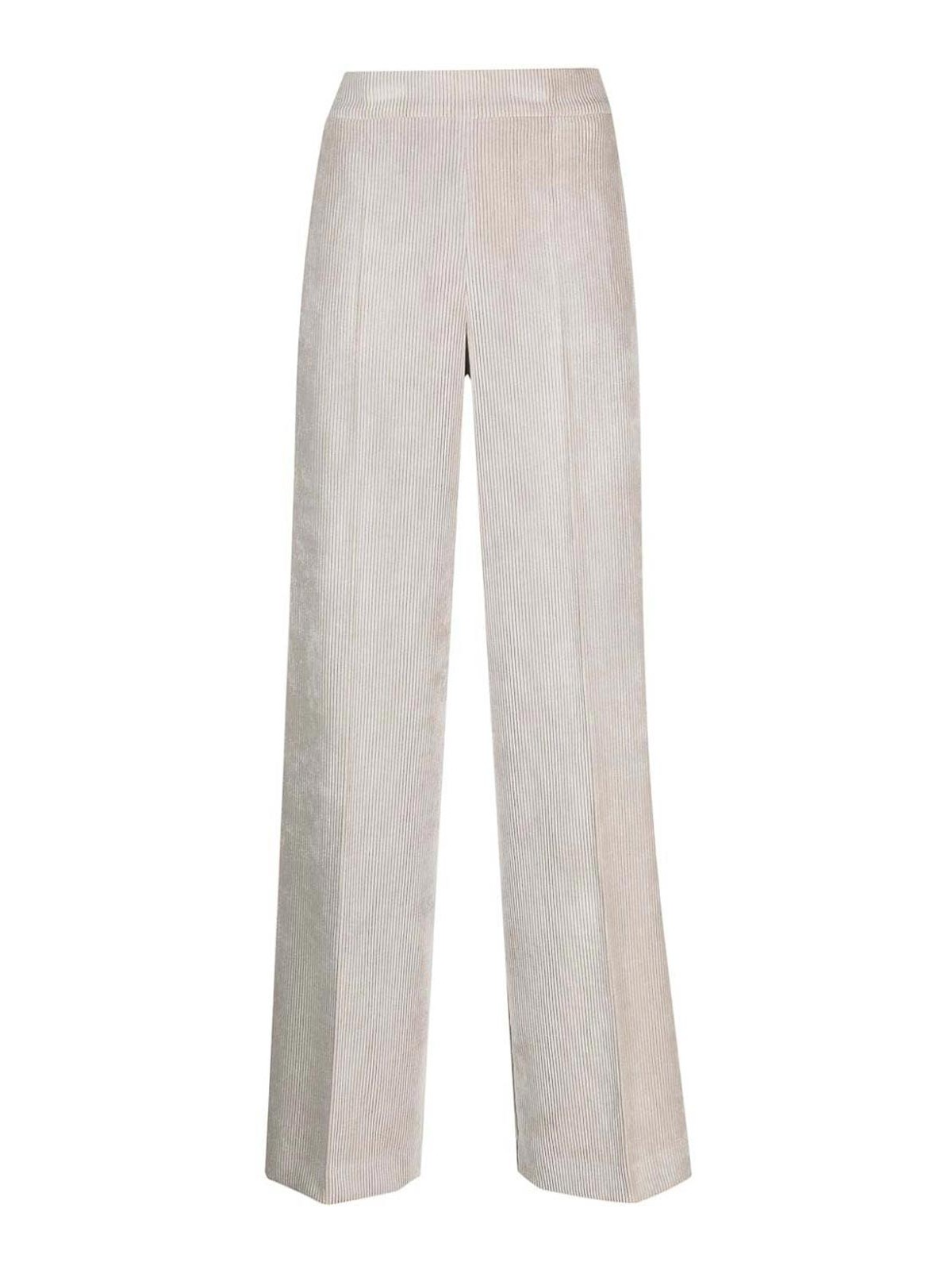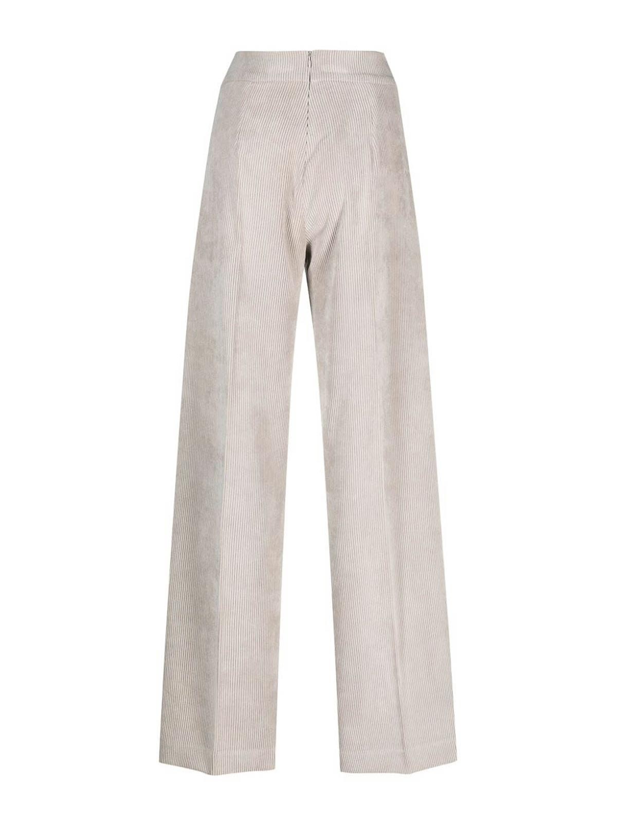 dエクステリアのフレアレッグコーデュロイパンツ。オフホワイトのコーデュロイハイウエスト、隠しリアジッパー、フレアが特徴です。
