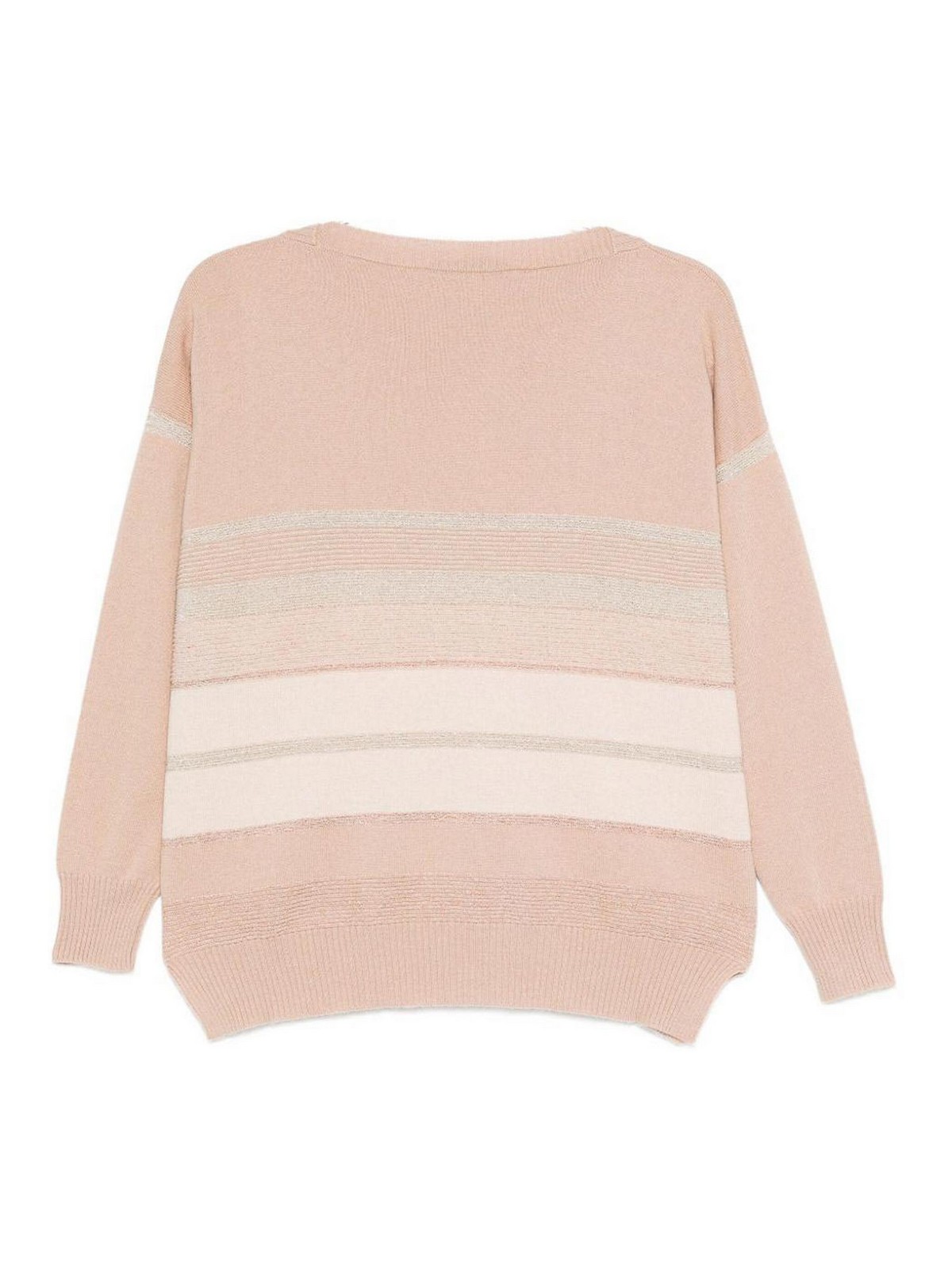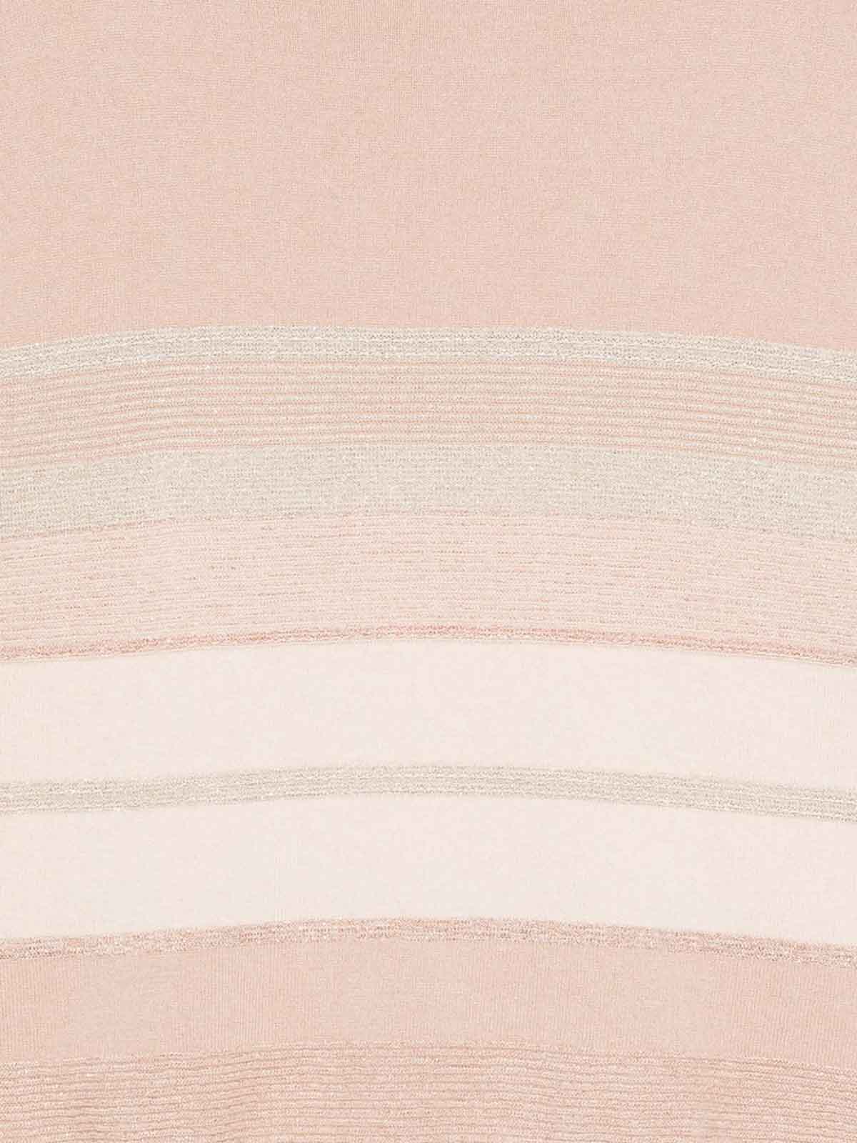 ライトピンクのホリゾンタルストライプラウンドネックロングスリーブリブ付きカフス